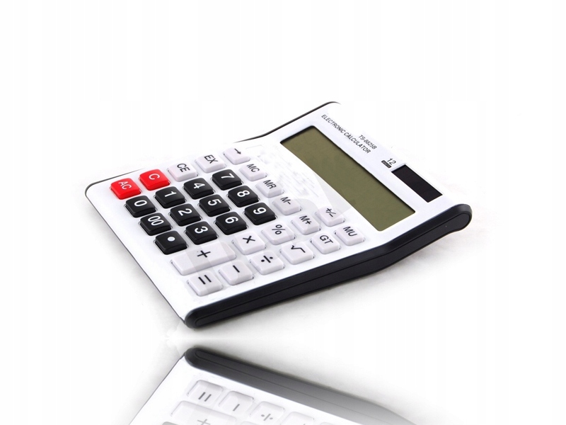 12-значний настільний калькулятор є ідеальним рішенням для людей, яким потрібно більше складні розрахунки. Дисплей розміщений під кутом для кращого читання цифр. Потрібен у школі, для роботи вдома.