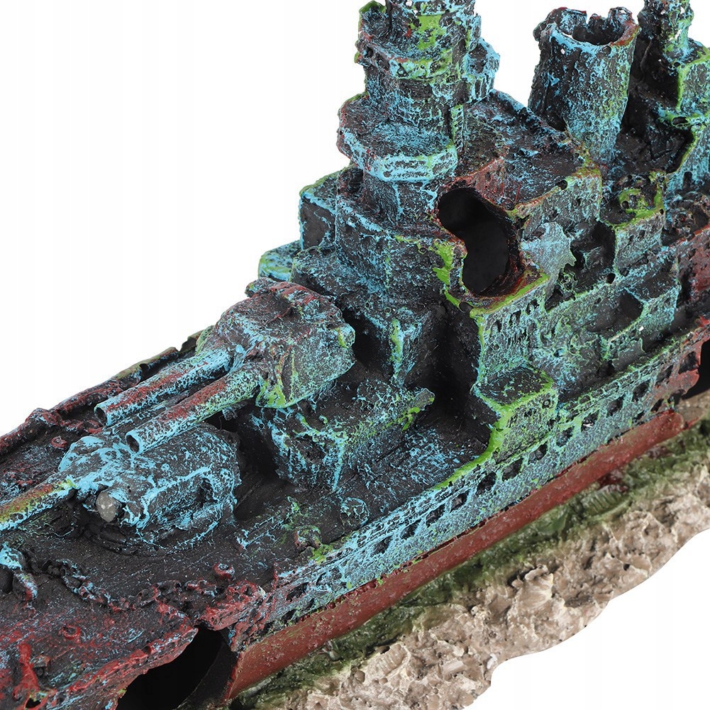 1. Виготовлений із нетоксичного полімерного матеріалу, стійкого до корозії, безпечного для риб. 2. Імітація корабельної аварії моделі лінкора та яскраві кольори додадуть радості та природного відчуття вашому акваріуму. 3. Конструкція з кількома отворами забезпечує ідеальне місце для сховання риби та креветок. 4. Чудова прикраса для вашого акваріума. 5. Розширена основа для легкого та надійного розміщення.
