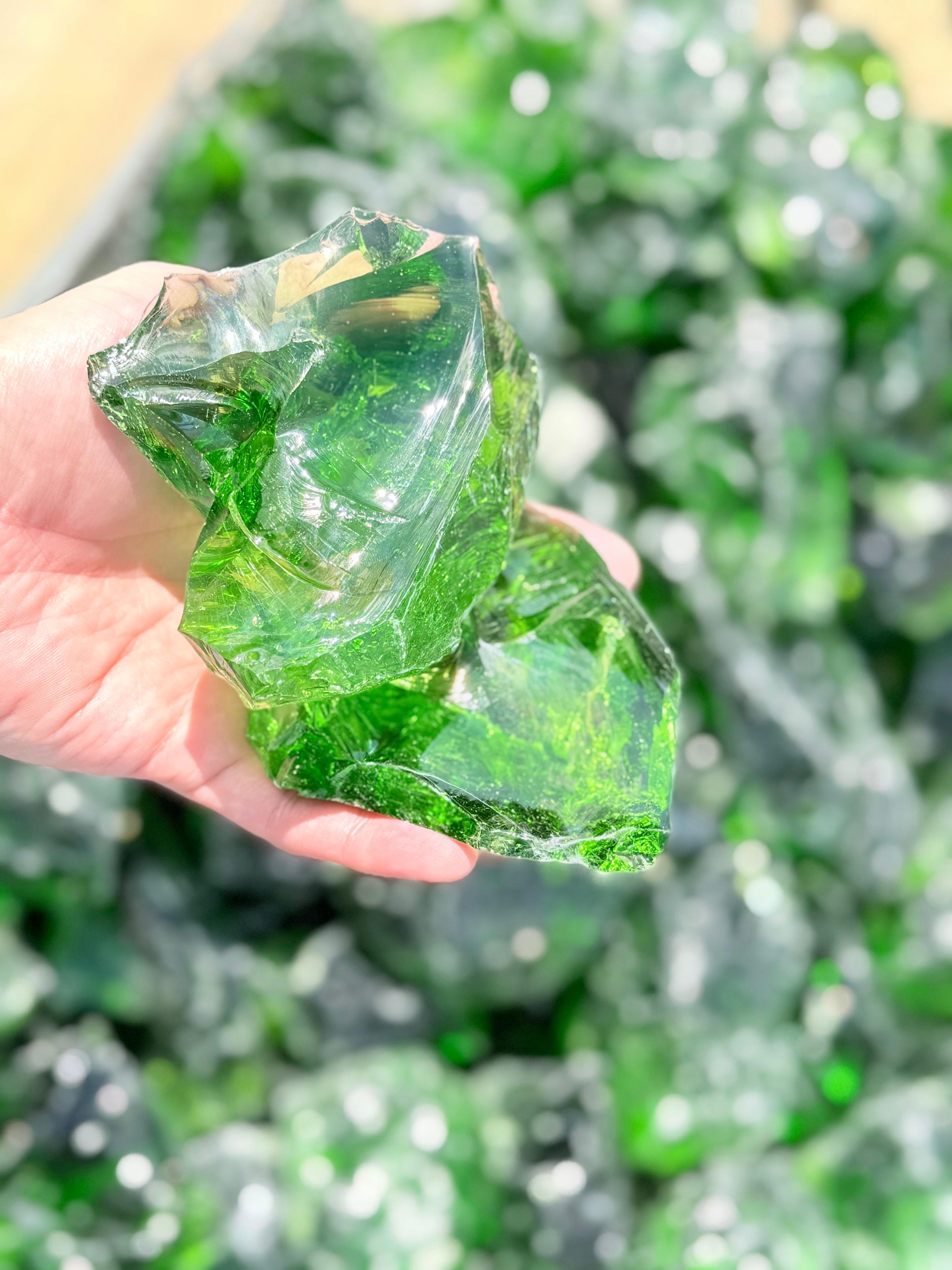 Оформлення акваріума скляне, зелені скляні камені, камені 6-10 см 10 кг