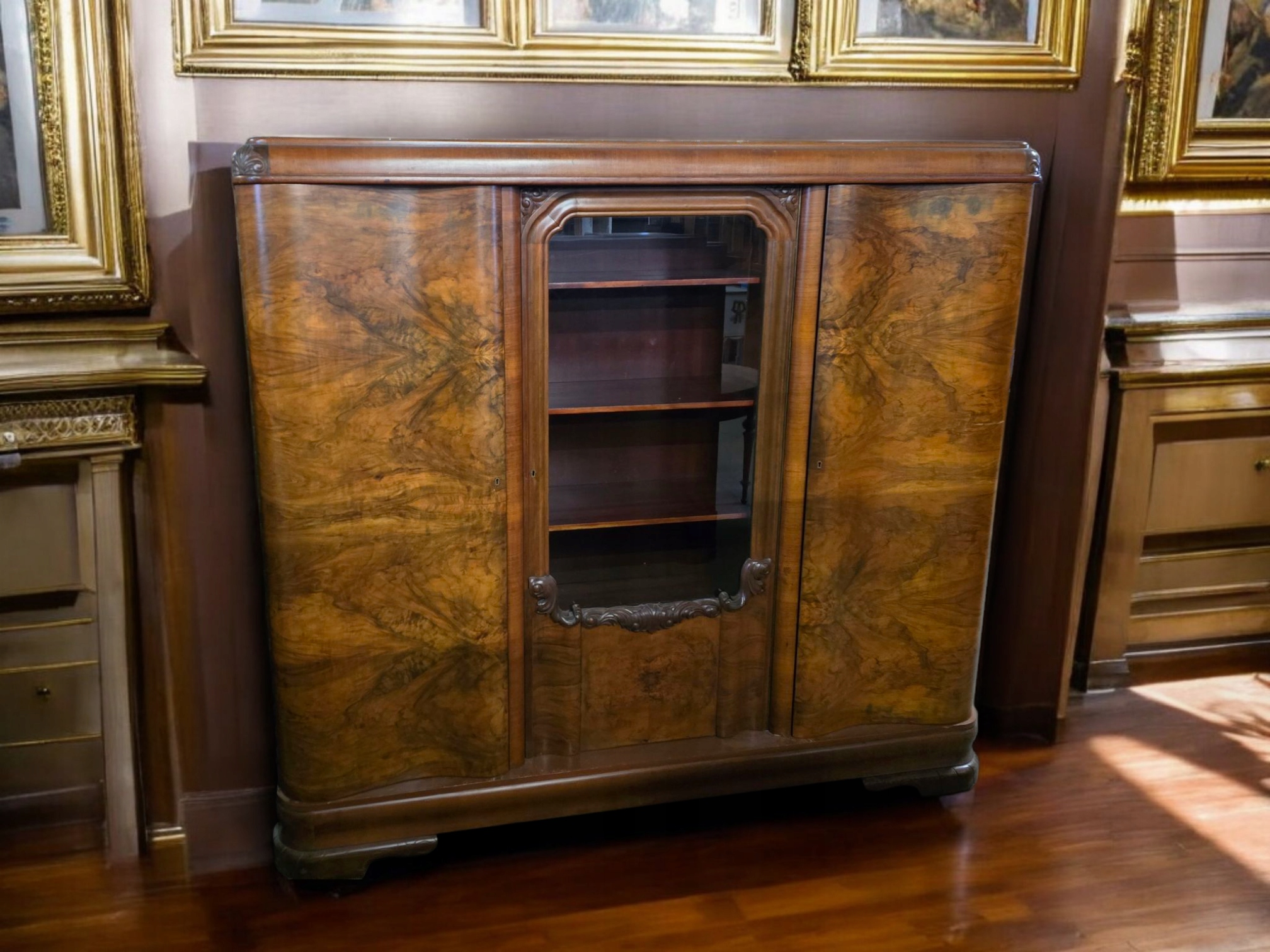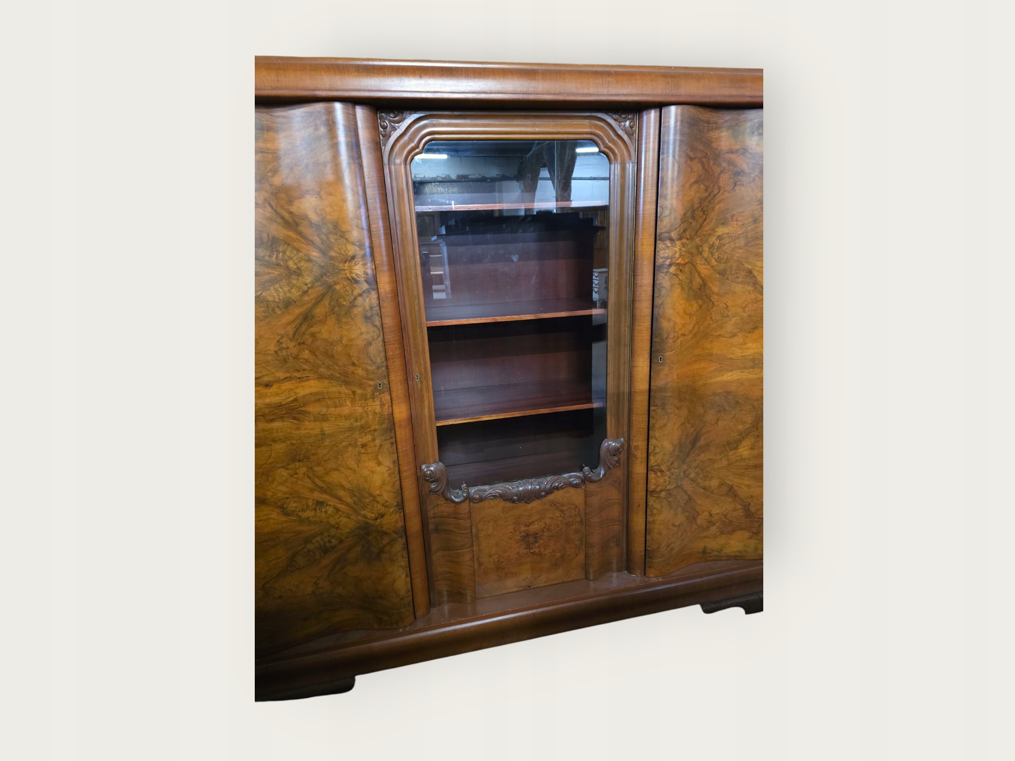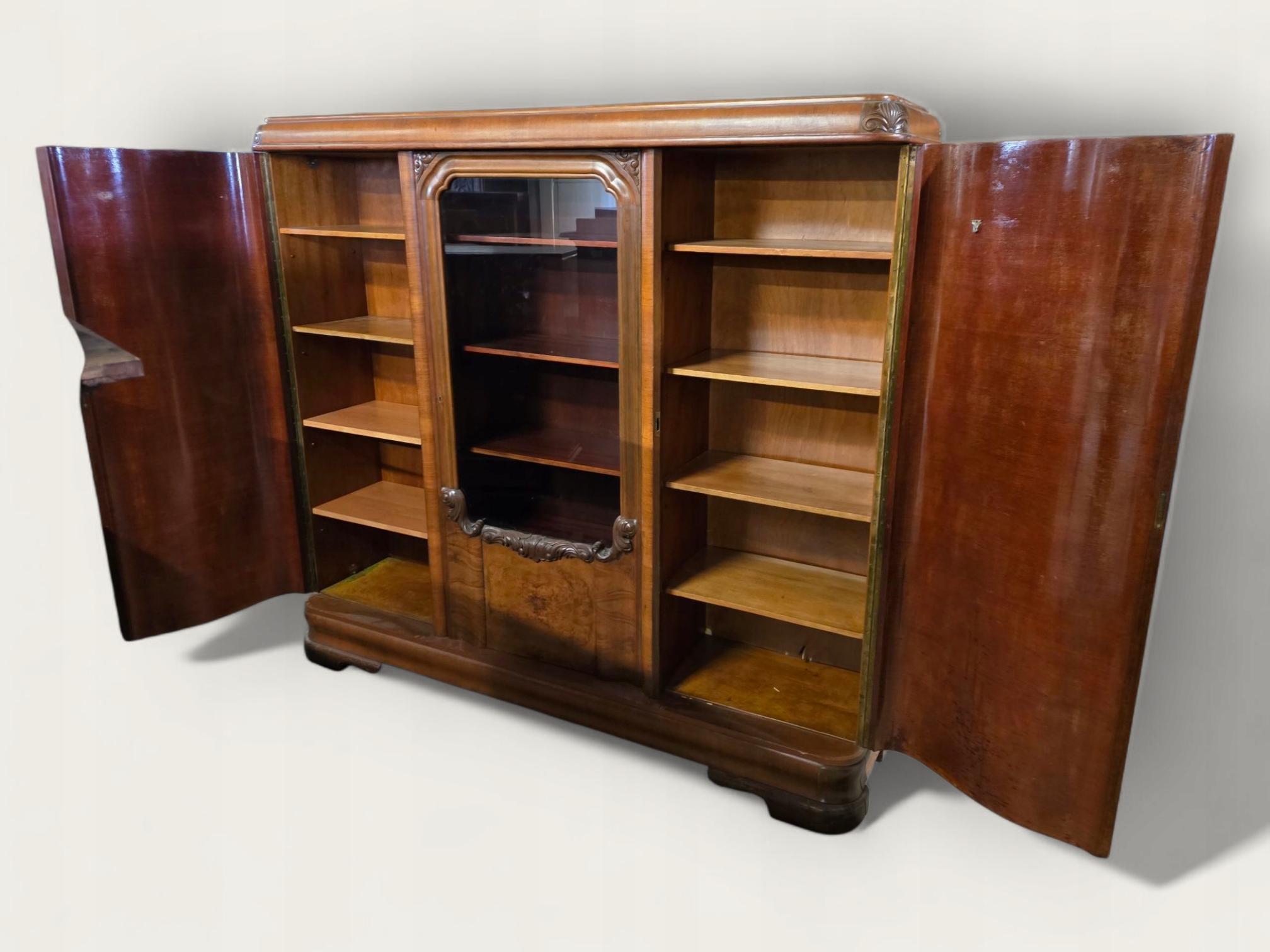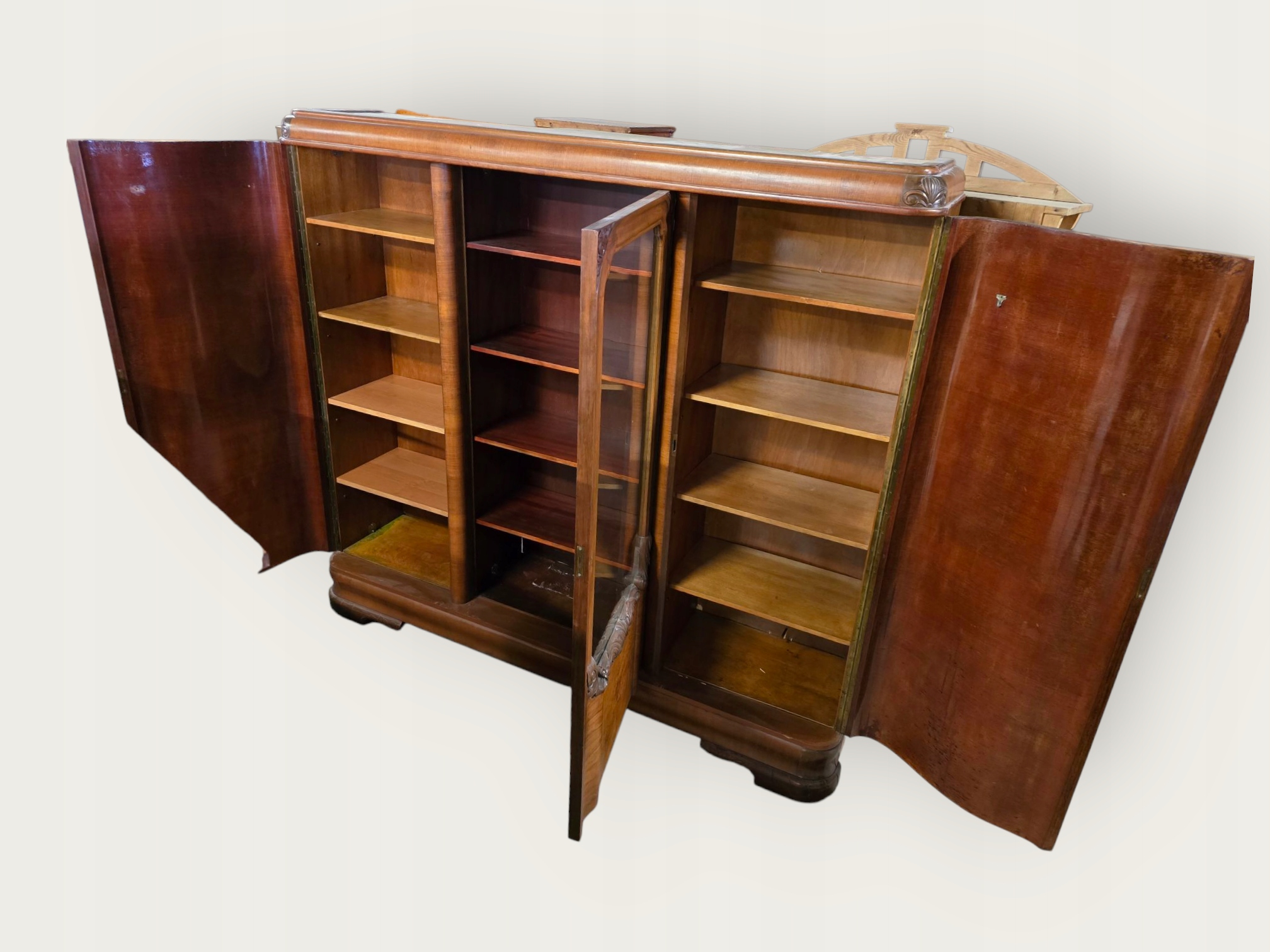 Унікальна бібліотека арт -деко з 30 -х років, імпортована з Берліна. Він характеризується стандартною формою з прекрасним фронтом переднього фронту та делікатним дерев’яним сортом. Меблі роздягається, що полегшує транспорт. Дуже хороший дизайн, вимагає візуального оновлення. Розміри: висота 185 см, ширина 200 см, глибина 45 см. Відмінна база реконструкції для поціновувача антикваріату.