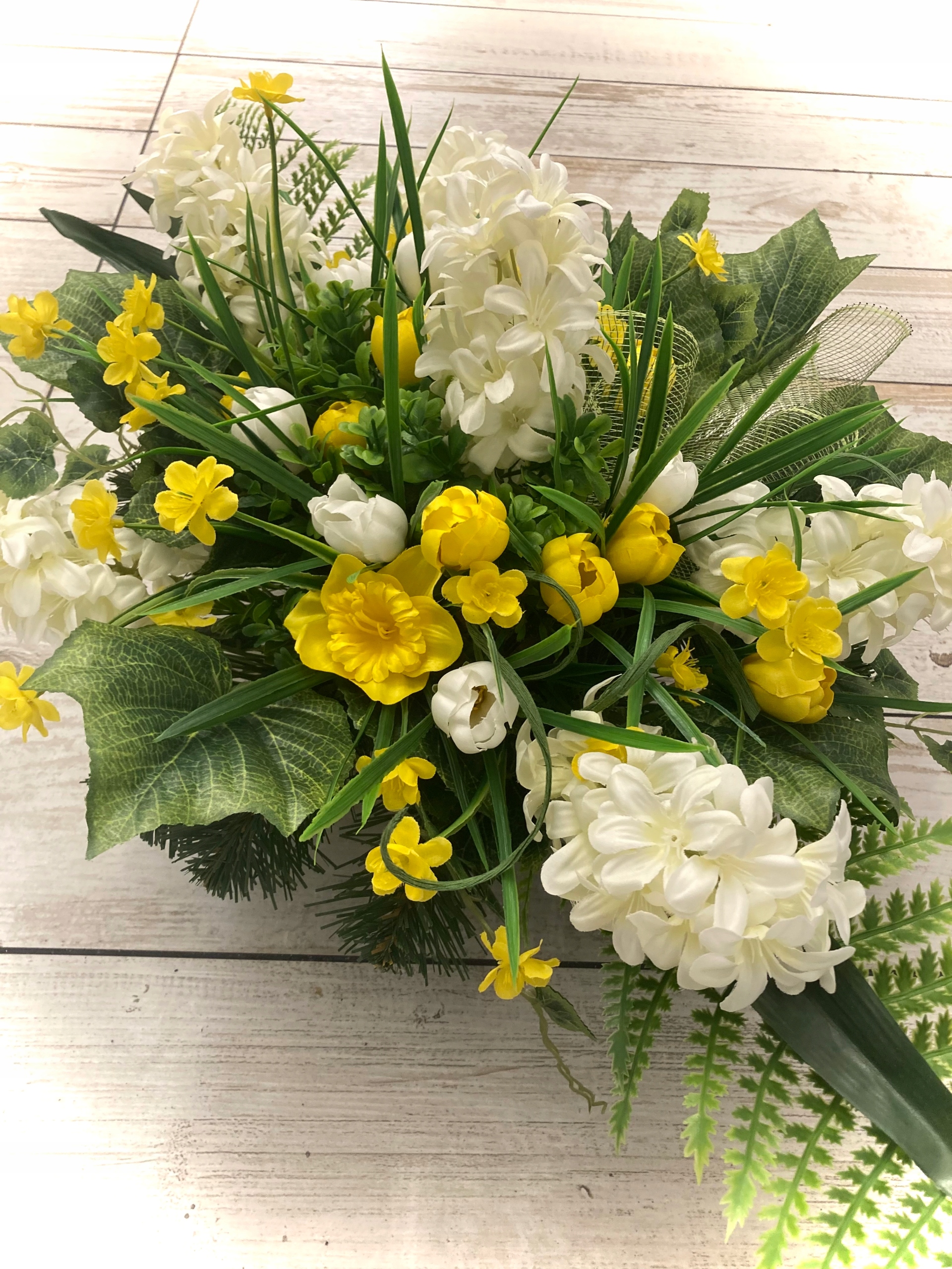 Оформлення могили, цвинтарний букет, яскраві кольори
