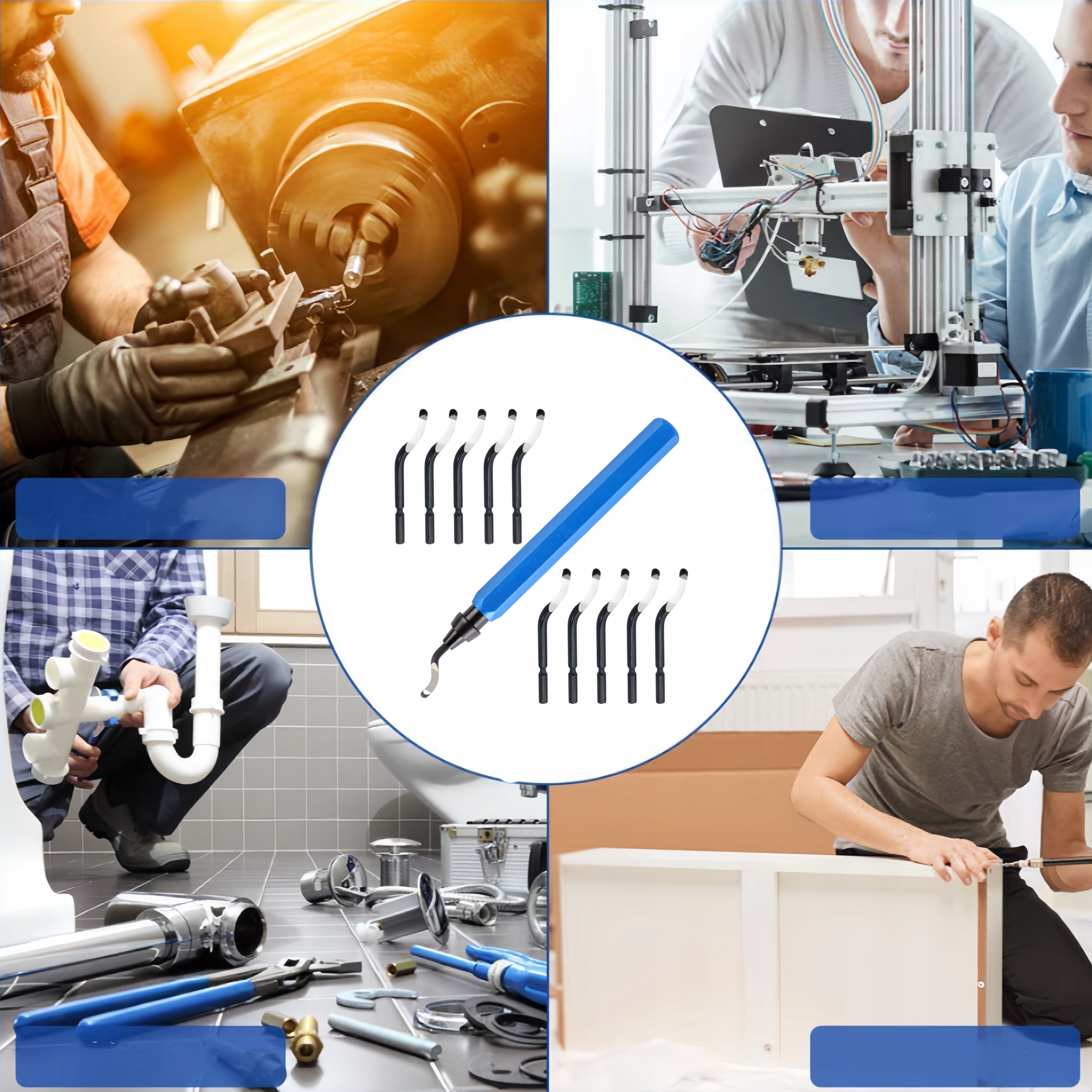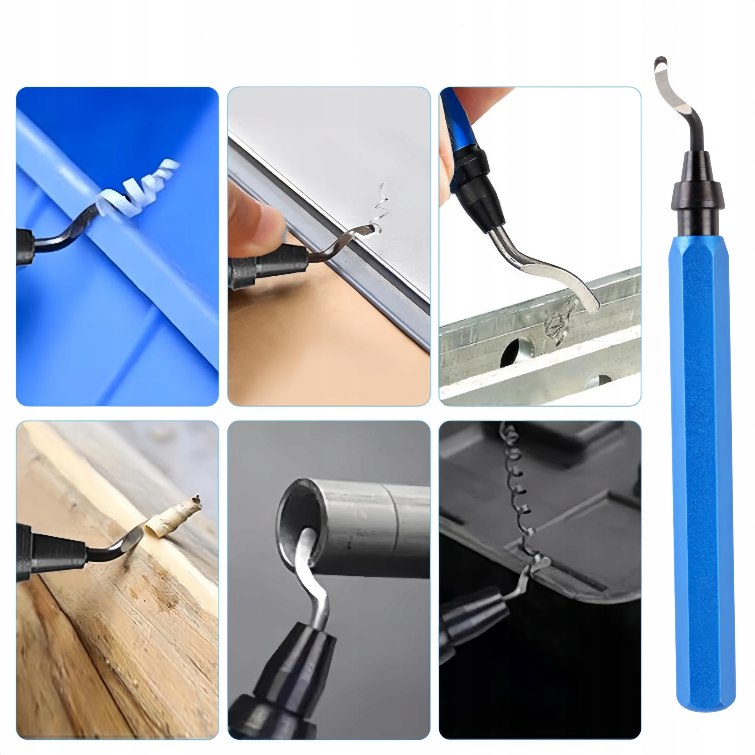 Широке застосування:Набір ножів для зняття задирок ідеально підходить для таких матеріалів, як метал, сталь, мідь, алюміній, пластик, ПВХ, жерсть, лотки тощо, ефективно задовольняючи потреби інструментів для зняття задирок.