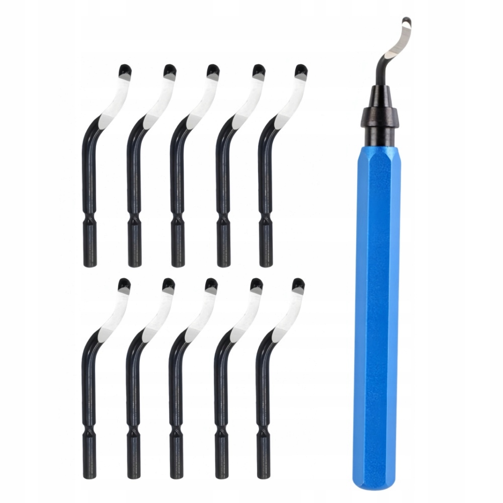 ПІД ЧАС НАБОРУ ІНСТРУМЕНТІВ: Поставляється з точною алюмінієвою ручкою та 10 лезами для видалення задирок. Лезо BS1010 HSS із поворотом на 360° і 40 градусів ідеально підходить для різання круглих країв отворів, глибоких отворів, прямих країв, канавок.