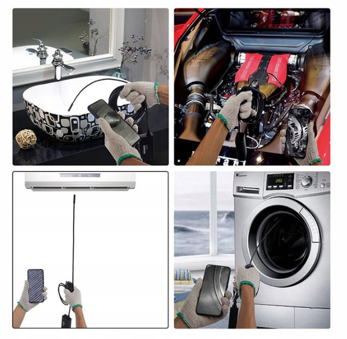 Дуже корисний пристрій, використовується в автомобільних майстернях, при ремонті та будівництві, в слюсарній справі, а також в домашньому господарстві. Завдяки довгому кабелю (5 м) і мініатюрній камері з підсвічуванням (діаметр всього 5,5 мм) ендоскоп допоможе оглянути важкодоступні місця, колодязі, трубопроводи і вентиляцію. Якість камери дозволяє отримати чітке зображення, яке можна сфотографувати або навіть записати на відео огляду. Для освітлення на кінці камери використовуються світлодіоди, їх яскравість можна регулювати.
