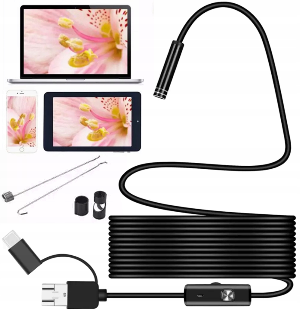 Ендоскоп оснащений з з інноваційним роз’ємом 3-в-1 – USB-A, USB-C і microUSB.