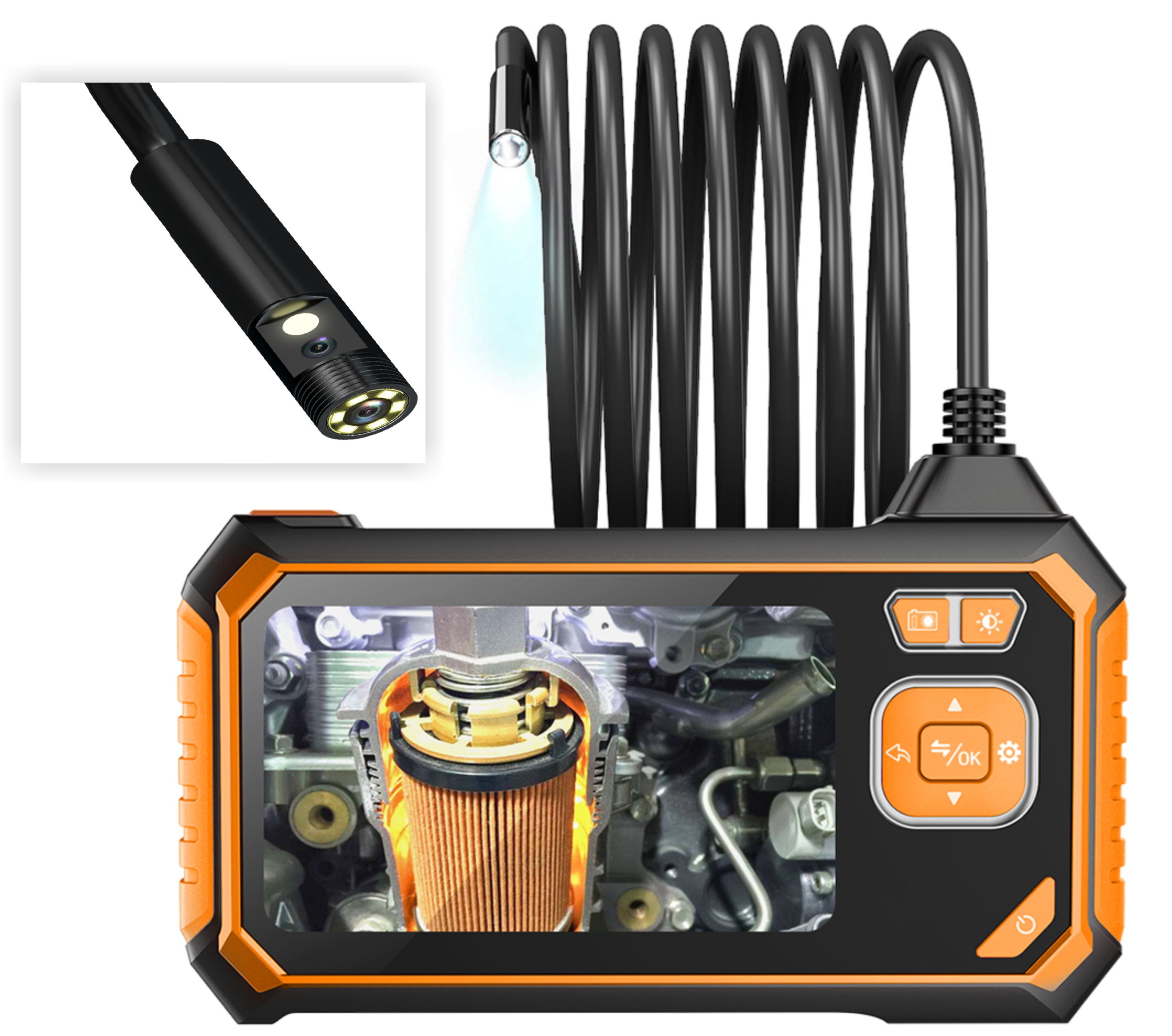 На кінці ендоскопа єсвітлодіодні лампи, які освітлюють темне середовище. Виберіть потужність освітлення відповідно до ваших потреб. Ця функція значно підвищить комфорт використання.