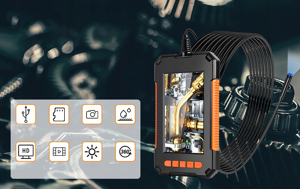 - Цей ендоскоп оснащено оновленим 4,3-дюймовим IPS-екраном, який пропонує ширший кут огляду 180 градусів з кожного кута , справжній кольоровий дисплей і технологія динамічного відображення відео, щоб забезпечити вам чітке бачення під час кожного огляду для чіткішого зображення.