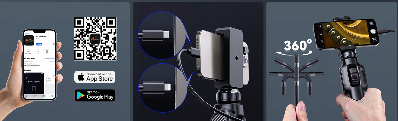✅Простий у використанні: b>Наша професійна ендоскопічна камера з підсвічуванням безпосередньо підключається до вашого телефону, що забезпечує більш стабільне та чітке бачення, ніж з’єднання Wi-Fi або Bluetooth. Додаток сумісний як з Android, так і з iOS. Щоб почати, просто завантажте програму з App Store (IOS) або Google Play Store (Android).