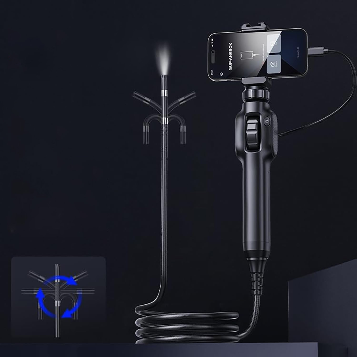 ✅Обертова камера ендоскопа на 360°: наш унікальний дизайн дозволяє лінзам гнучко згинатися на 360°. З додатковою HD-камерою 1080P, встановленою збоку від основної 8-мм камери. Ви можете розмістити невеликі зонди у вузьких місцях, а потім передавати яскраві, чіткі та повні відео та зображення на екран монітора для майже ідеального кругового огляду.