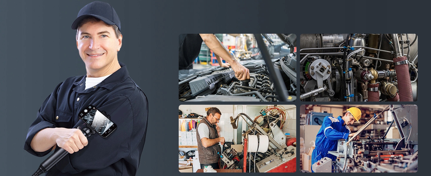 ✅Широко використовується та проста у використанні: оглядова камера з подвійним 8-мм об’єктивом і гнучким напівжорстким кабелем довжиною 2 м ідеально підходить для різних типів перевірок, проста для промислового ремонту транспортних засобів/автоматизованих систем, промислової механічної перевірки , виявлення перевірки повітроводів і лінії, обслуговування побутової техніки тощо.