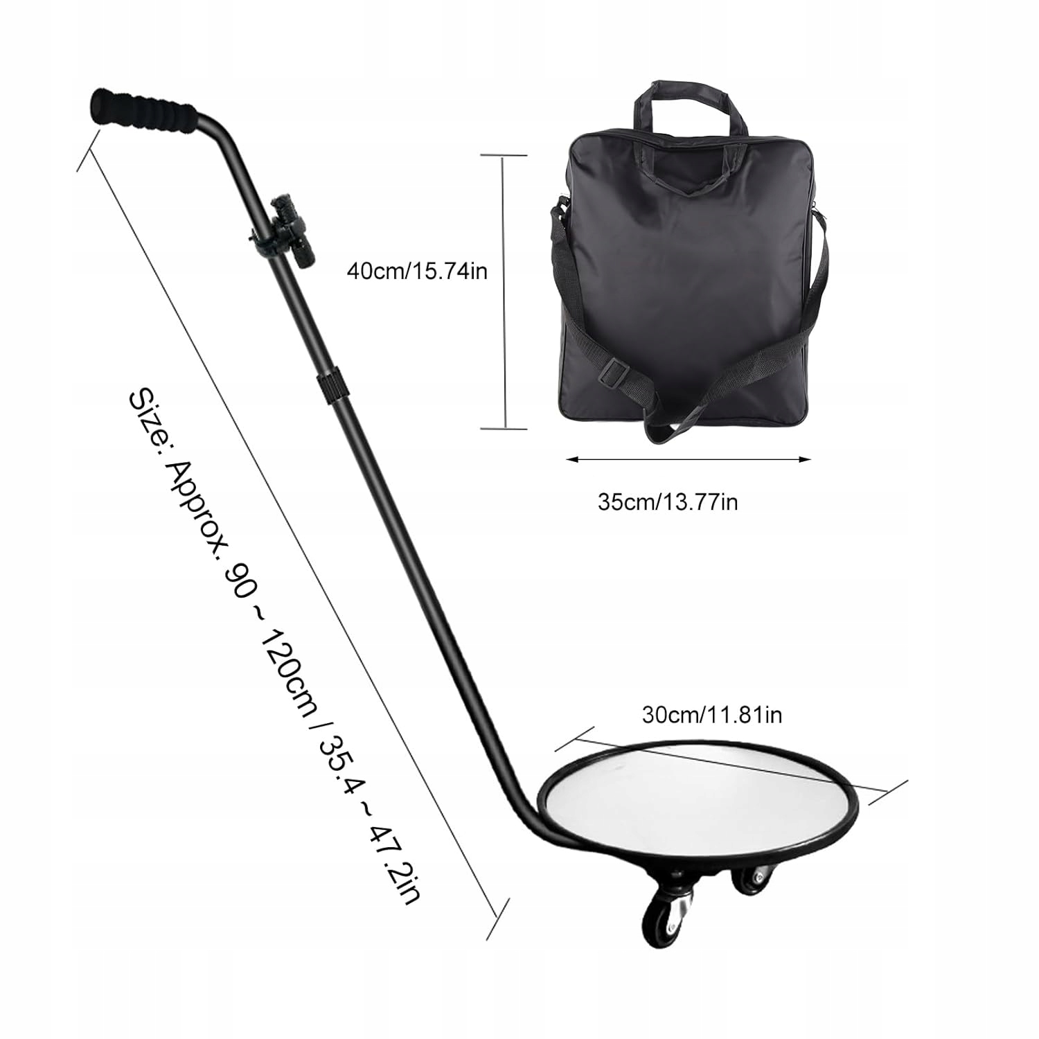 ПОВНІСТЮ РЕГУЛЬОВАНИЙ КУТ ДЗЕРКАЛА ЗАДНЬОГО ВИДУ Оглядове дзеркало шасі дозволяє інспекторам з безпеки легко перевіряти будь-яке місце під транспортним засобом, не нахиляючись або не втрачаючи концентрації на завданні перевірки ГНУЧКЕ ТА ГЛИБОКОЕ Мінімальна видима висота безпечного дзеркала для огляду під транспортним засобом становить 10 см з ручкою Телескопічна рульова рейка, а конструкція переднього та заднього з’єднань на 170 градусів може максимізувати глибину виявлення автомобіля та об’єктів. Джерело світла в безпечному дзеркалі зі стандартним світлодіодним ліхтариком на 9 ламп, що живиться від 3 батарейок ААА, в комплект не входять. Світлодіодні ліхтарі мають довший термін служби, більше енергозбереження, мають високу яскравість МІЦНА КОНСТРУКЦІЯ Безпечне дзеркало сприймає осколки з подвійною кулькою, подвійним безпечним пластиковим кільцем, яке позиціонує чудову алюмінієву структуру з високою міцністю обробки, легка вага, міцний і красивий. Поверхня покрита безпилою фарбою вуличної пекарської майстерні, довгострокова, не тьмяніє, не має запаху, нешкідлива для організму людини. Оснащені чорною бавовняною ручкою з пінопласту, вони добре зчеплюються, придатні для ЗАСТОСУВАННЯ СЦЕНАРІЮ V3 автомобіля під оглядовим дзеркалом, придатні для використання в автомобілях, школах, на контрольно-пропускних пунктах на митному кордоні тощо. Портативні, прості та зрозумілі з трьома рухомими опорними колесами світло під час водіння, використовується для перевірки аномалій під автомобілями вантажівки обладнання полиці та кути або перевезення легкозаймистих і вибухонебезпечних матеріалів ЛЕГКИЙ ТА МІЦНИЙ Дзеркало для огляду автомобіля використовує акрилове небитке дзеркало діаметром 30 см із високоміцним опуклим 2-кратним ефектом збільшення важить 12 звичайних скляних дзеркал той же розмір має певну міцність, яку нелегко зламати, безпечний і міцний Яскравість така ж, як і скляне дзеркало. Тверде гумове дно та оточення можуть ефективно запобігти пошкодженню дзеркала від зіткнення