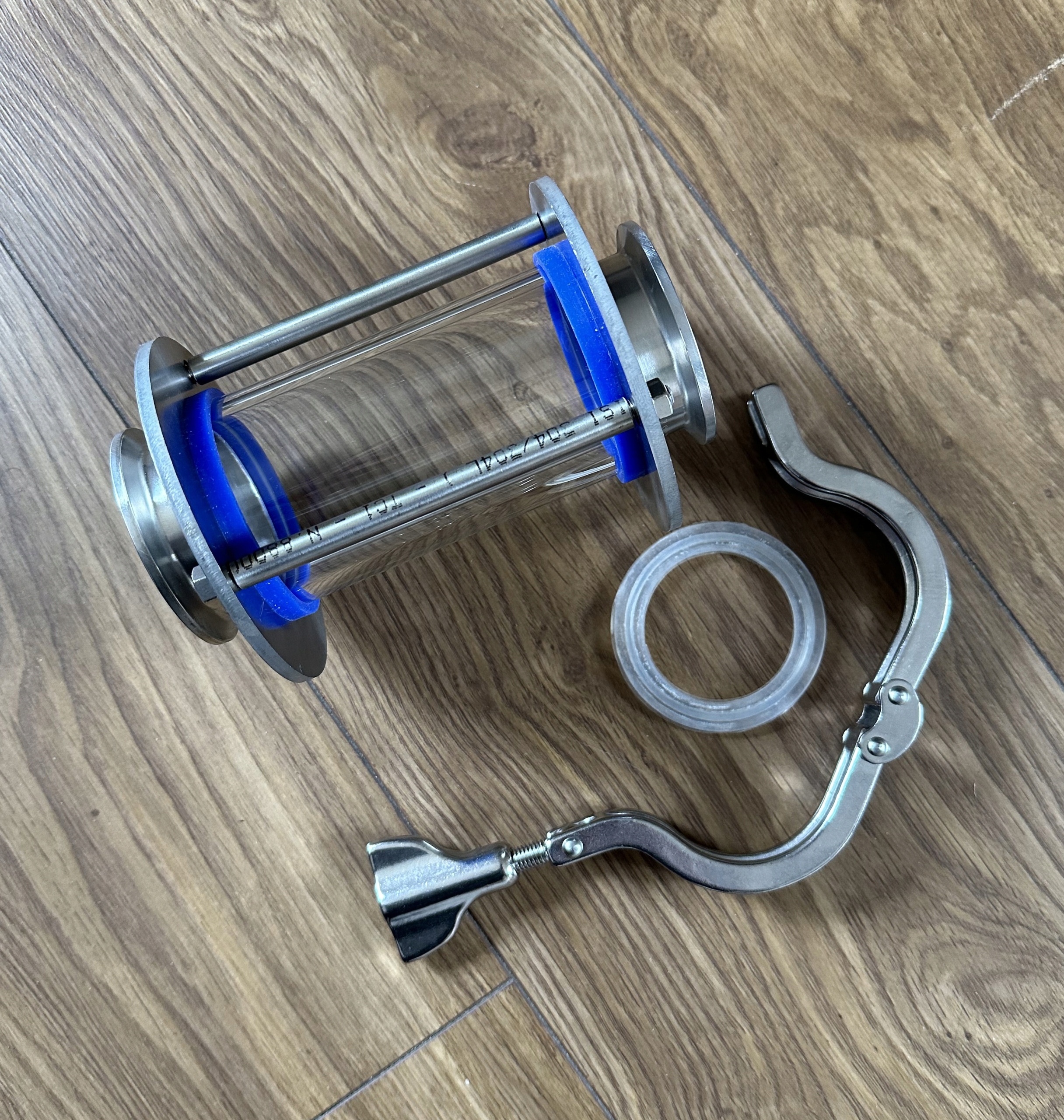 - ОГЛЯДОВЕ СКЛО НА З’ЄМНІ TRI-CLAMP + 2 X СКЛЯНІ ПРОКЛАДКИ + 2 X ПРУЖИННА ОПОРА + 2 X ПРУЖИННІ ЗАЖИМИ