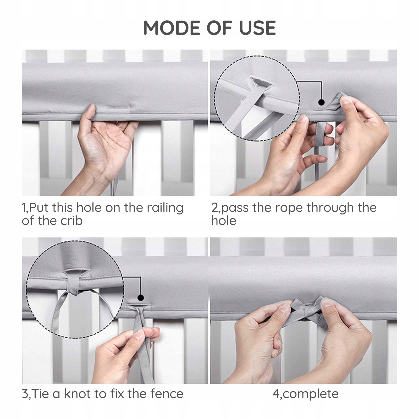 Незалежно від того, чи знаходиться вона в дитячій кімнаті, на ліжечку чи люльці, ця накидка на ліжечко є ідеальним вибором для захисту ваших немовлят від травм. Уникайте ударів голови, ніг або рук дитини об жорсткі поручні ліжечка або огорожі ліжка. Простий і зручний у використанні, відповідає різноманітним потребам.