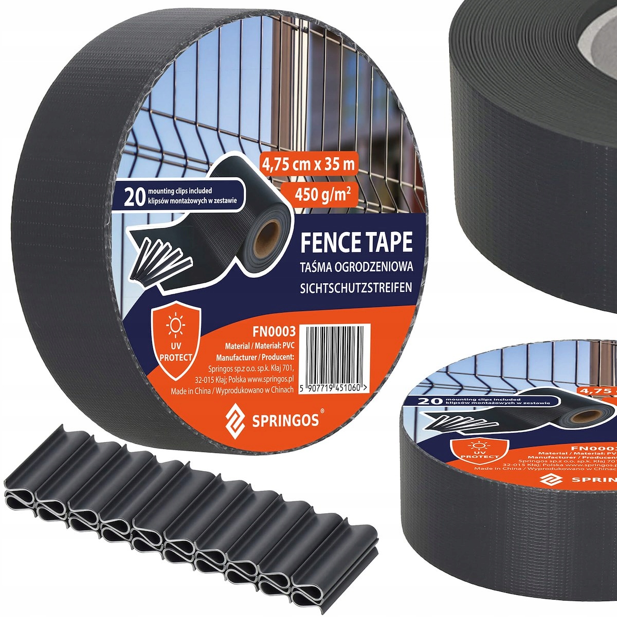 Затискачі для кріплення огорожної стрічки бренду Springos® мають універсальні розміри та чудові властивості завдяки які вони чудово виконують свою роль. Виріб має низку переваг, таких як: міцний і довговічний пластик, стійкість до УФ-випромінювання та негативних погодних умов. Набір містить 20 деталей того самого кольору, що й стрічка для паркану.