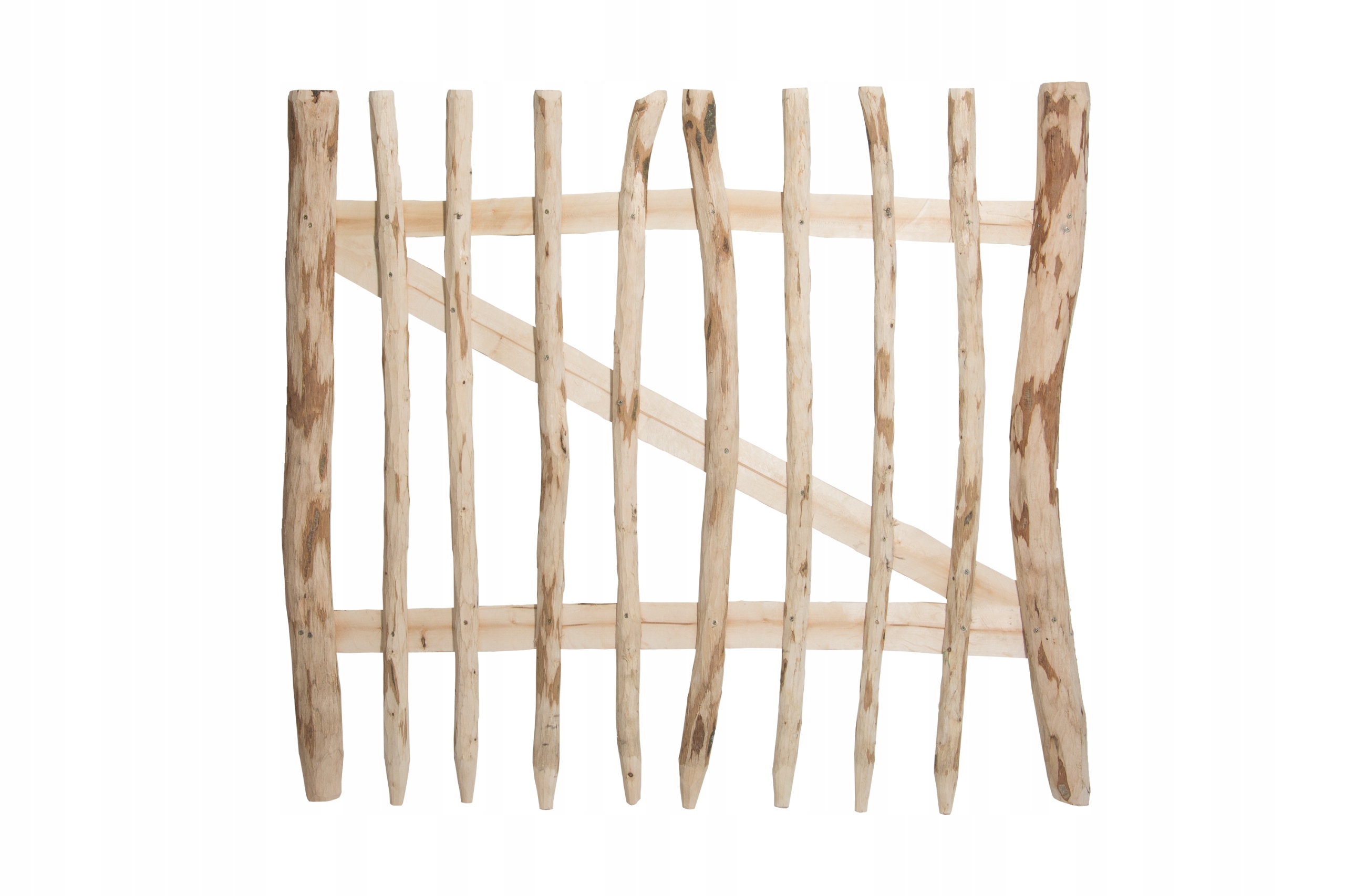 Виготовлена з лісової деревини, з'єднаної оцинкованим дротом, є природним та екологічним. Це прекрасне доповнення до саду, надаючи йому оригінальний природний характер. Огорожа також буде добре працювати як огорожа приватної власності або створити ферму для тварин. Продукт довговічний і стійкий до погодних умов тривалий час.