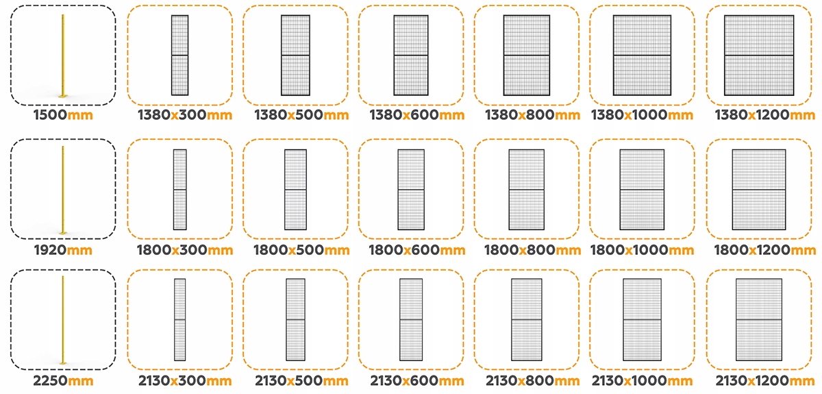 Варіанти панелей PoIning - Доступні висоти та ширини