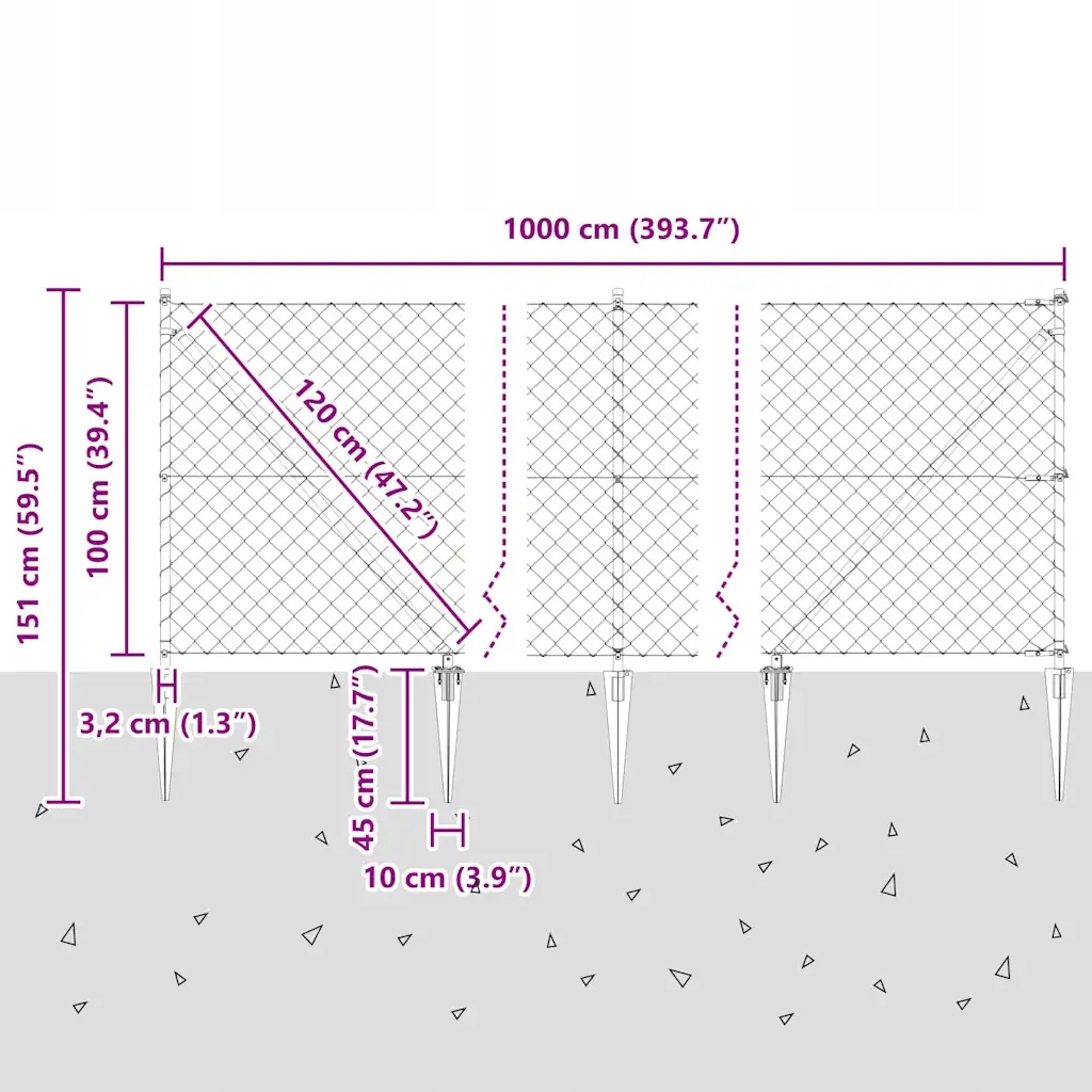 - Загальні Розміри: 1000 х 3,2 х 100 см (довжина х ширина х висота)