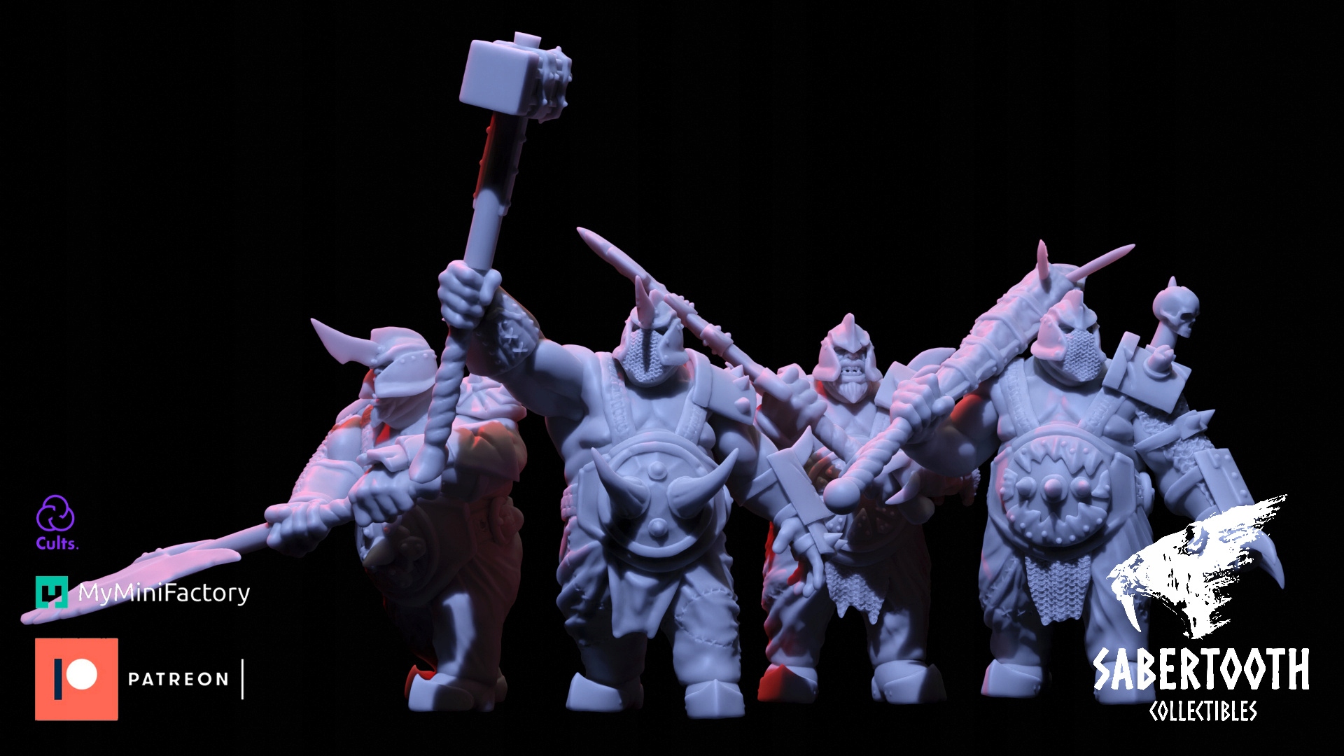 Предметом пропозиції є набір із чотирьох моделей Ogre Steelguts від Sabertooth Collectibles, надрукованих на 3D-принтері за технологією SLA.