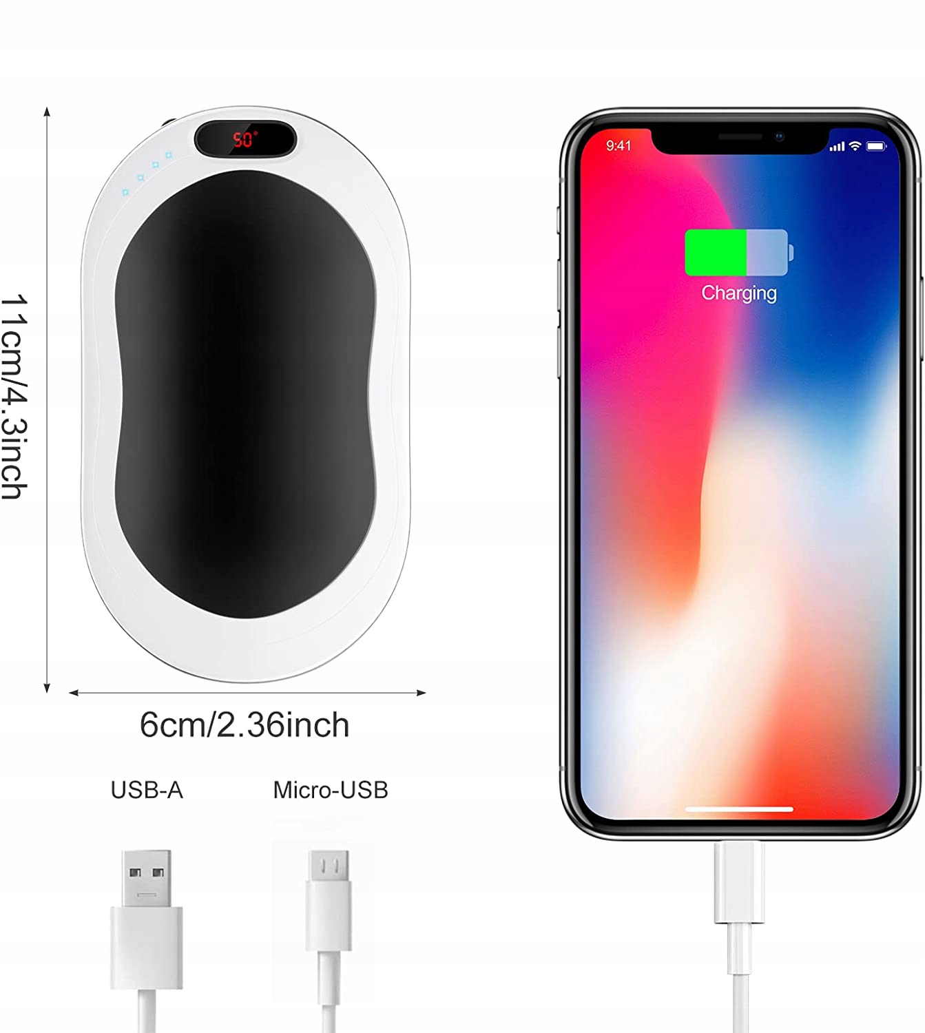 OGRZEWACZ DŁONI PRZENOŚNY POWERBANK ELEKTRYCZNY 6000 MAH 2W1 40-60°C USB