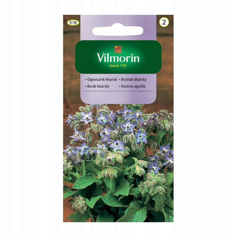 Форма: рослина має прямостояче, жорстке, сильно розгалужене стебло, що досягає висоти до 60 см, листя великі, довжиною до 15 см, товсте, однорідне за кольором, із зеленим відтінком, рослина зав'язує на верхівках пагонів блакитні квітки, вся рослина вкрита жорсткими волосками і виділяє запах, схожий на огірковий.