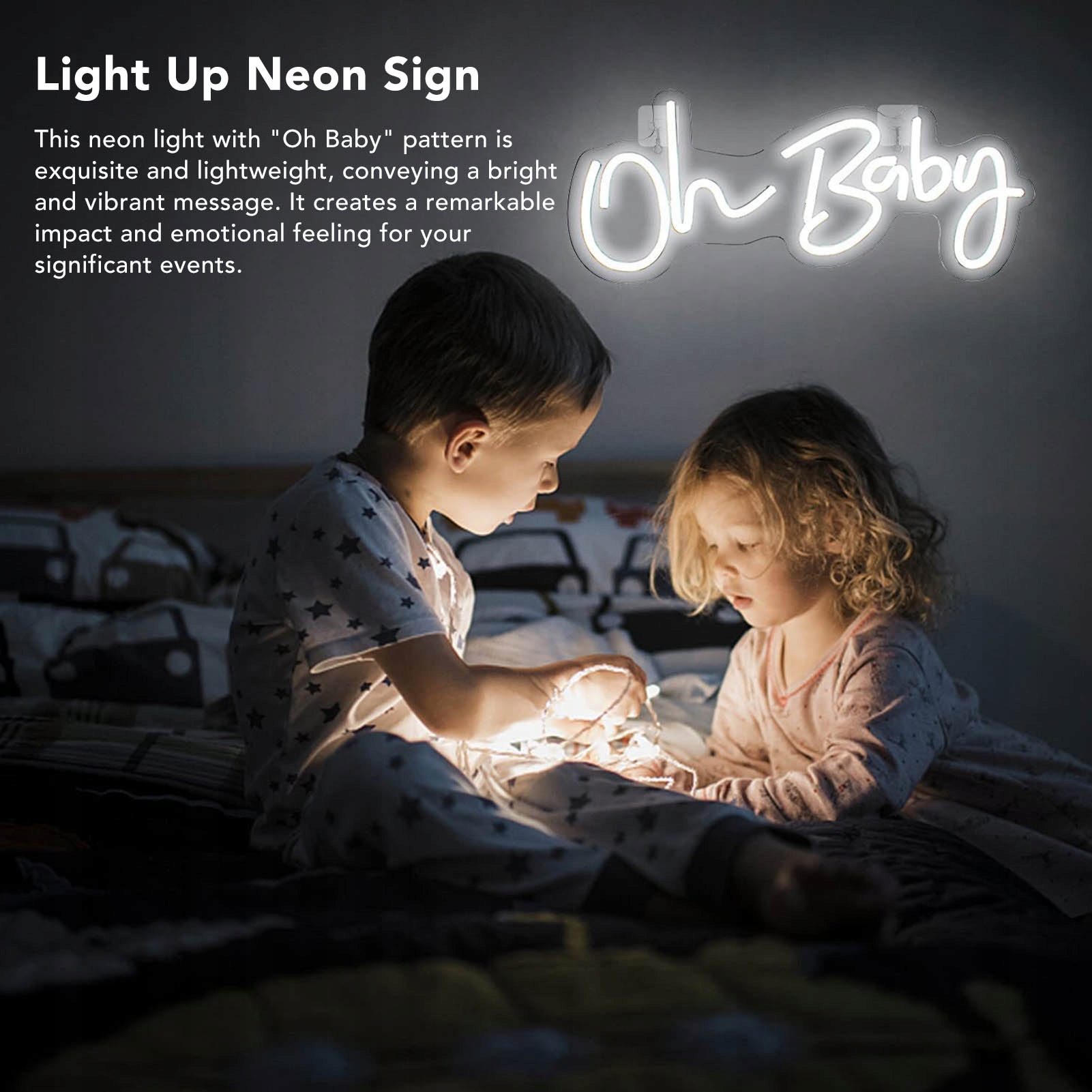 2. Вишуканий дизайн «Oh Baby»: ця неонова лампа з малюнком «Oh Baby» є вишуканою та легкою, передає яскраве та яскраве повідомлення. Це створює надзвичайний вплив і емоційне відчуття на ваші важливі події.