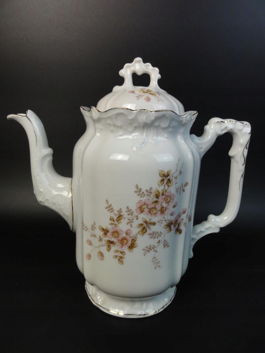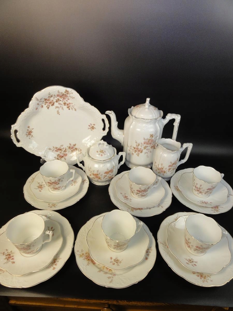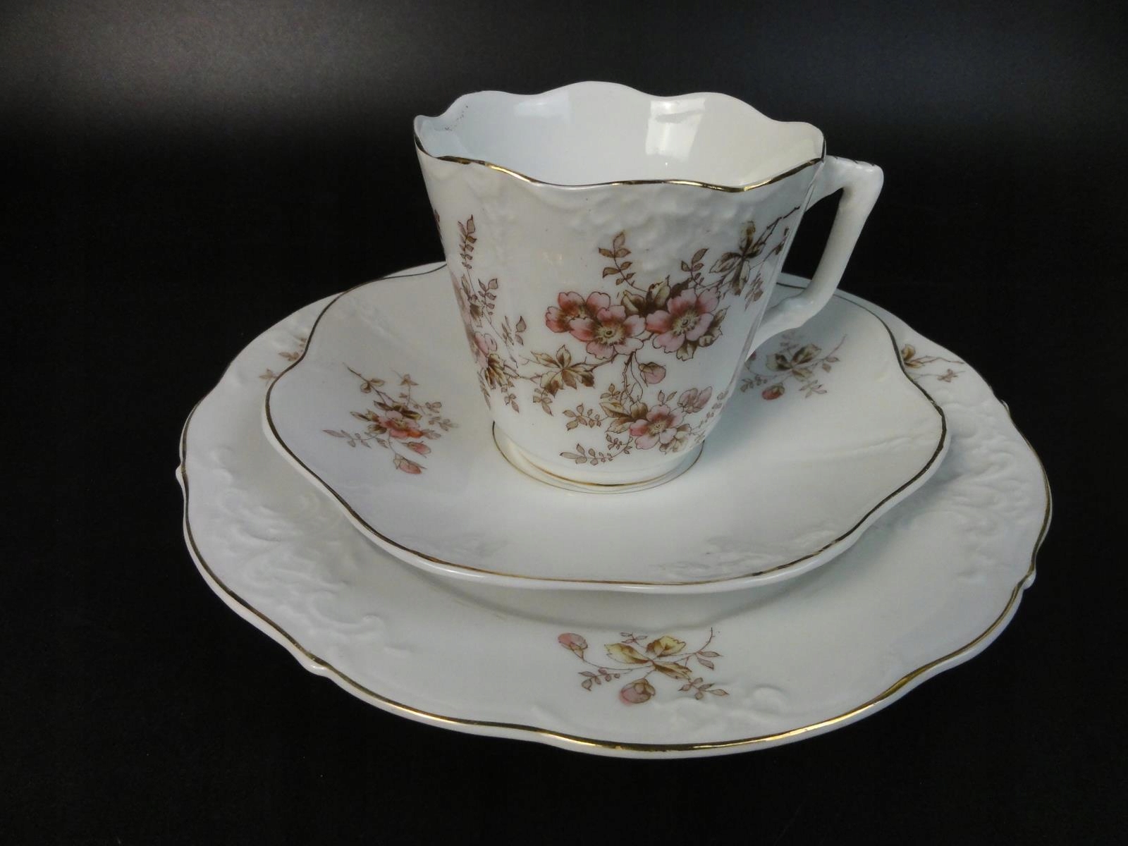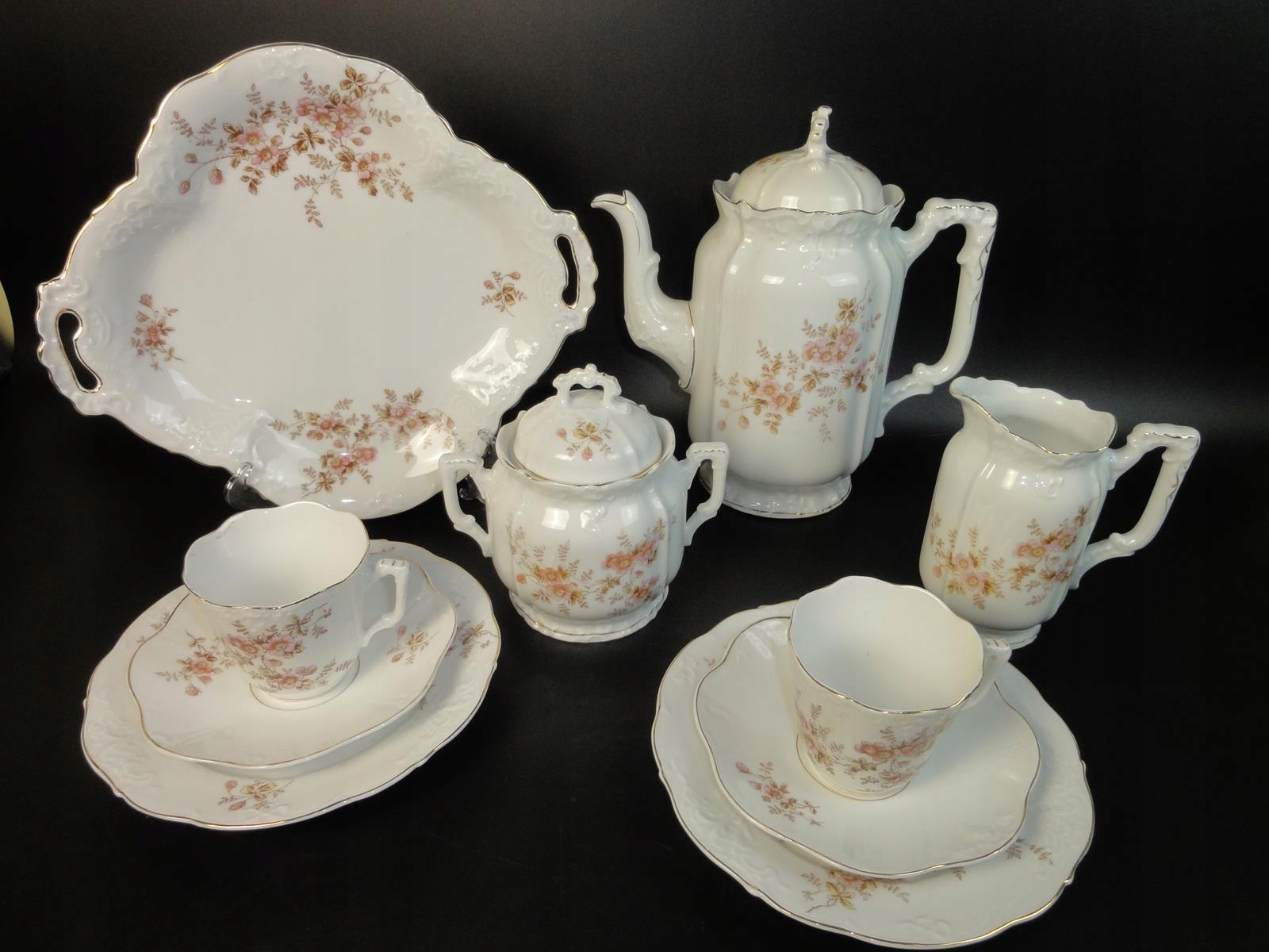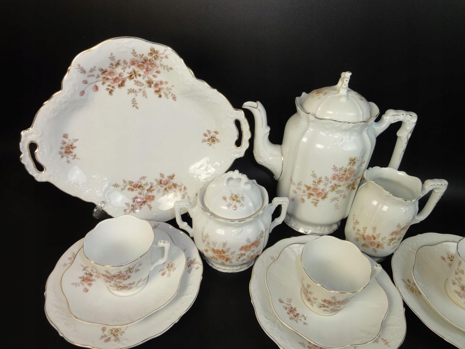 Кавовий сервіз для 6 осіб. Товстостінна порцеляна з рельєфами, декорована калькою.