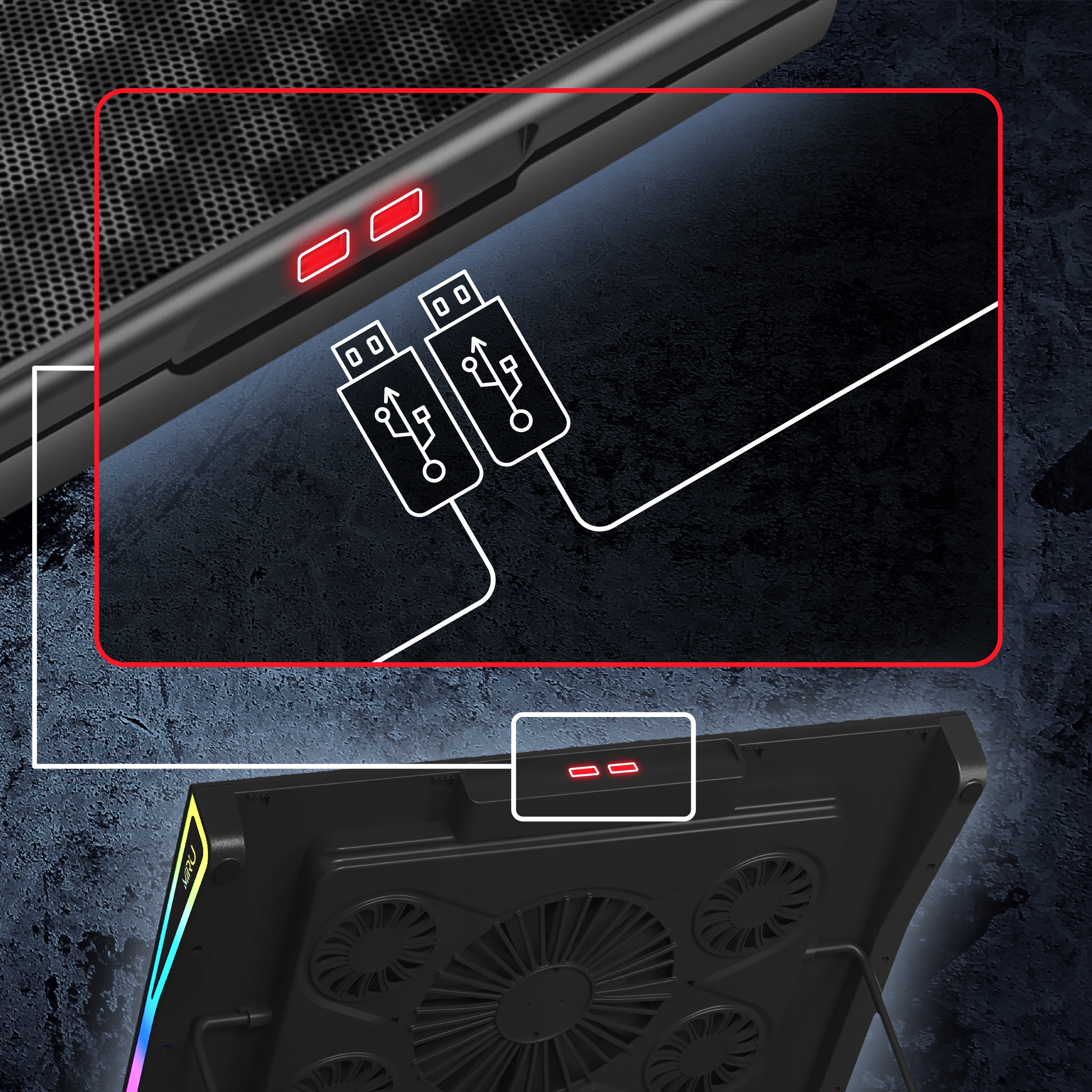 Один один використовується для живлення охолоджувальної панелі, а інший діє як USB-КОНЦЕНТРАТОР, що дозволяє підключати інші пристрої. Тепер ви можете насолоджуватися повною функціональністю в одному пристрої.