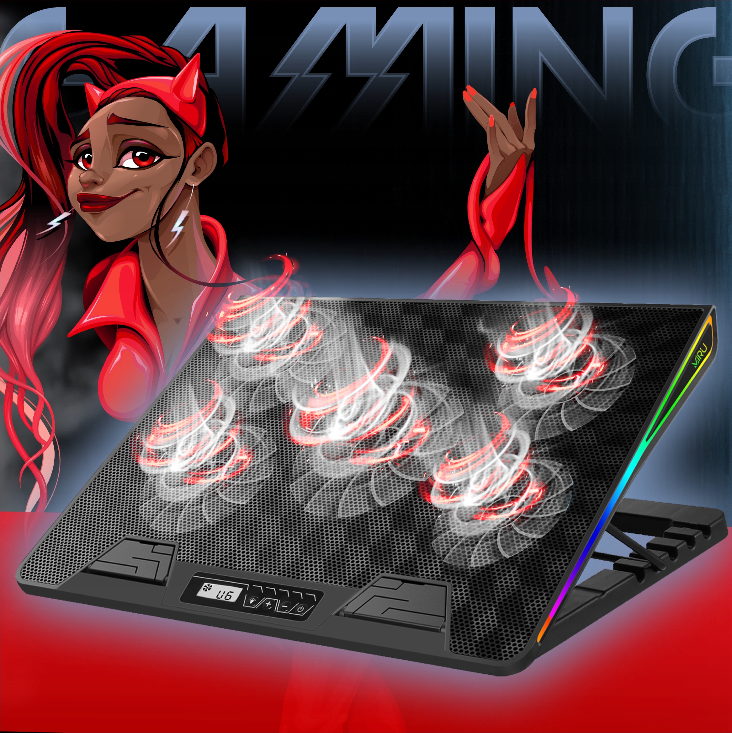 ХОЛОДЖИНА ДЛЯ НОУТБУКА 12-17'', РЕГУЛЬОВАНИЙ RGB LED, З USB