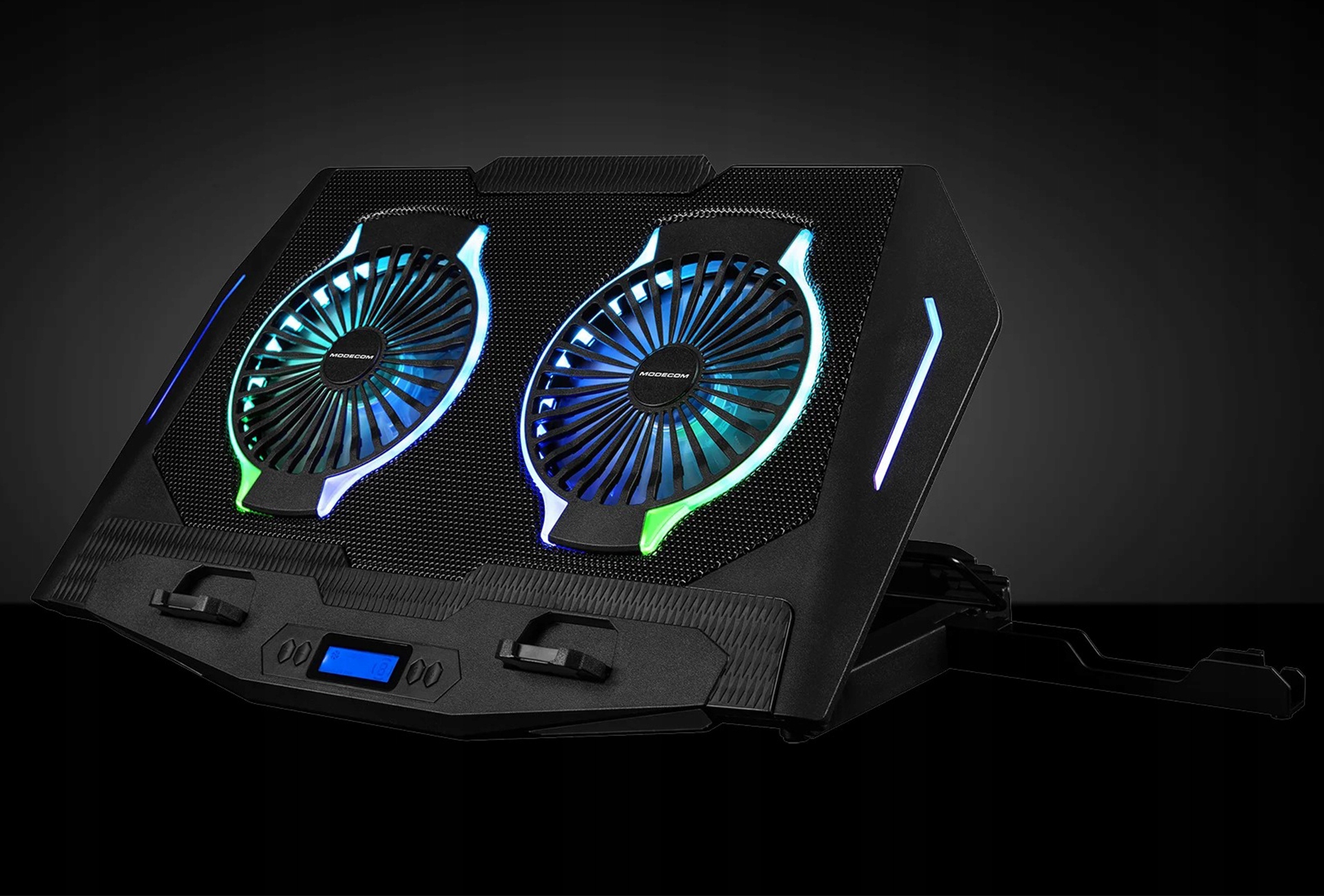 це дуже ефективна охолоджувальна підставка, яка оснащена двома великими вентиляторами діаметром 125 мм з підсвічуванням RGB і потоком повітря 120 CFM . Це одне з найефективніших рішень серед охолоджуючих панелей для ігрових ноутбуків. Панель MODECOM MC-CF21 призначена для ноутбуків з діагоналлю до 18 дюймів в нових дизайнах. РК-дисплей дозволить легко вибрати потрібний режим охолодження, починаючи від самого тихого варіанту і закінчуючи найефективнішим. Завдяки сучасній формі в поєднанні зі світлодіодами RGB підставка ідеально впишеться в більшість ігрових екосистем.