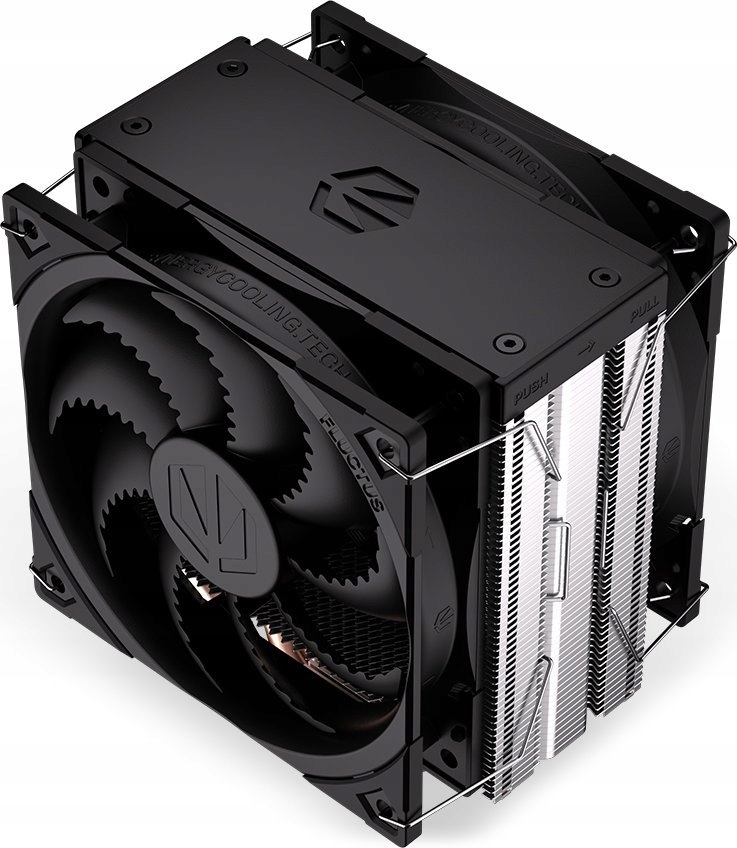 Разом з подвійним вентилятором Endorfy Fera 5, Морозна зима буде переважати у вашому комп’ютері. Коли ви вперше запускаєте його, ви більше не будете думати про змагання. Це приємно тихо і несе вимоги майже кожного процесора. Крім того, він вміститься в більшості корпусів - навіть у маленьких - тому що він висотою лише 15,5 см.  Сила подвійного вентилятора Endorfy Fera 5 -це два вентилятори Fluttus 120 PWM з додатковим напівпровідним режимом. Ми встановили щільно підібраний тепловідвід між ними-це набір працює в системі Push-Pull, що ще більше знижує температуру процесора.