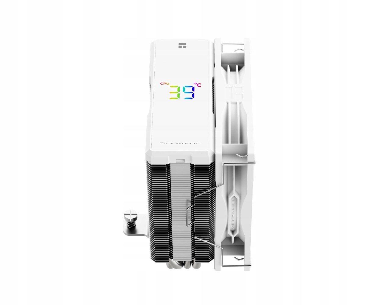 Модель охолодження Thermalright Assassin X 120 R Digital White була оснащена інтегрованим РК -екраном, який дозволить швидко переглянути температуру процесора без необхідності встановлення додаткових програм. Це рішення особливо корисне, коли ви хочете завжди тримати палець на імпульсі і регулярно реагувати на будь -які температурні стрибки. Просто підключіть охолодження до материнської плати через USB-роз'єм (9-контактний), і дані будуть автоматично відображатися на екрані. Весь тут елегантно інтегрується в структуру теплового раковини, яка не тільки виглядає сучасною, але й значно економить місце в корпусі.