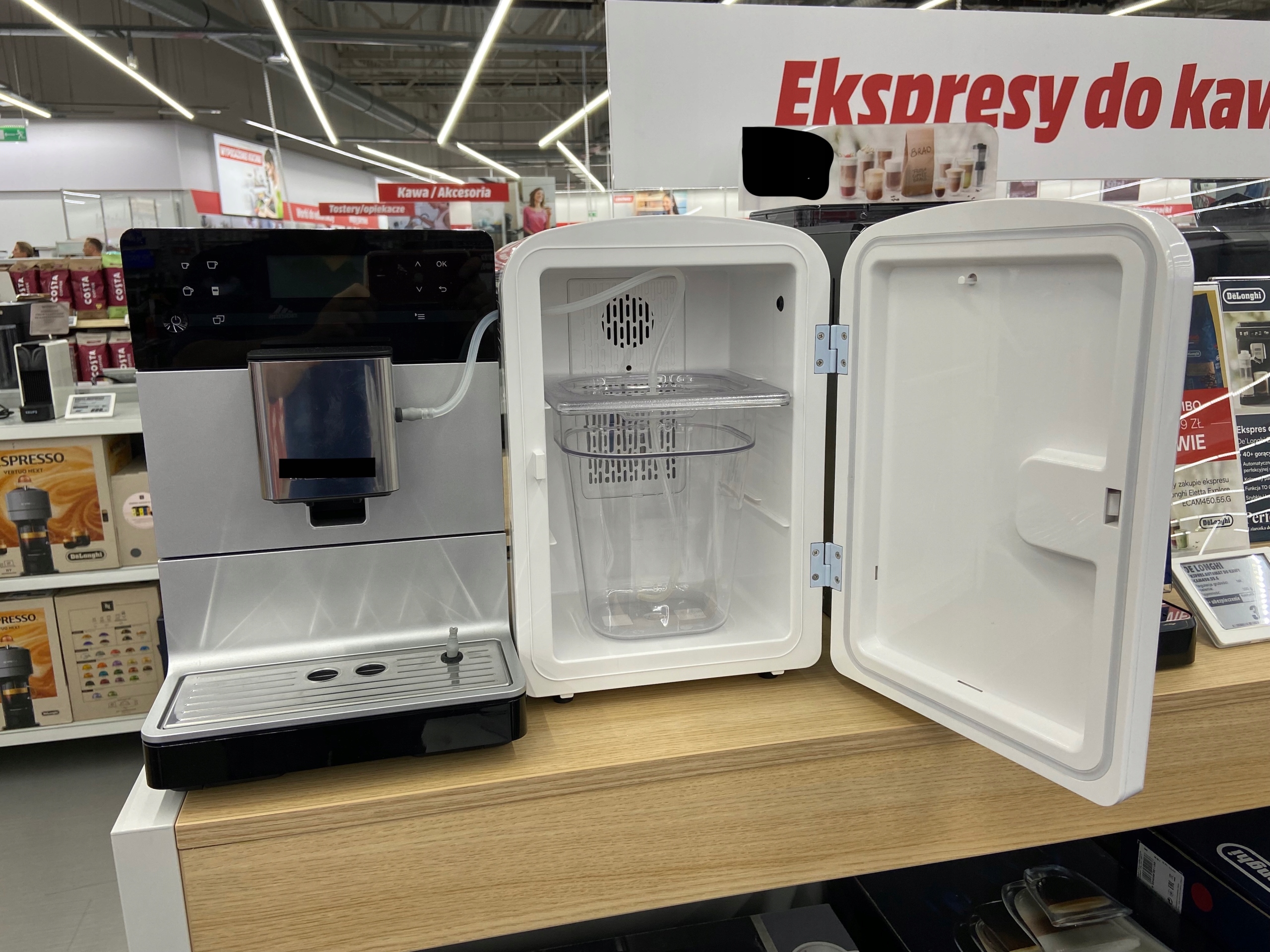 Отвори в бічних стінках холодильника для підключення кавомашини будь-якого типу.