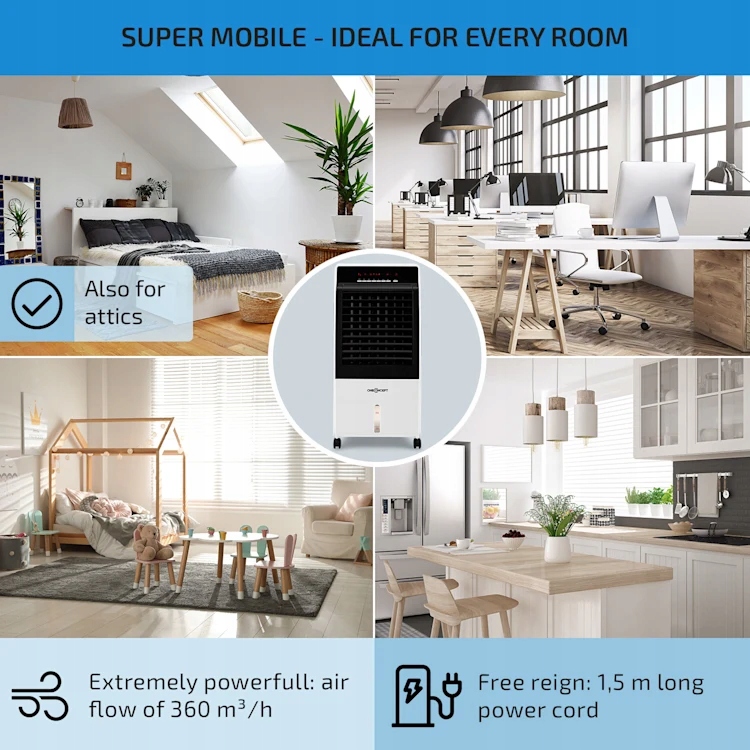 Коли дні стають коротшими, а потреба в теплі зростає, кондиціонер oneConcept CTR-1 Heath пропонує свої послуги. як потужний радіатор. Завдяки максимальній потужності 2000 Вт він миттєво забезпечує приємну температуру в приміщенні. Завдяки вентилятору тепле повітря швидко і ефективно розподіляється по приміщенню.