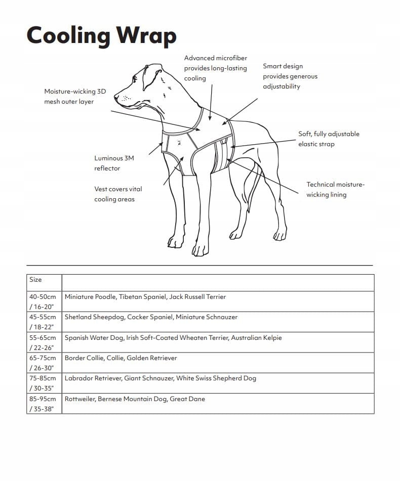 З охолоджуючим жилетом Hurtta ви зможете проводити більше часу на свіжому повітрі зі своїм вихованцем протягом усього літа. Жилет розроблений для охолодження найбільш відкритого місця, тобто грудної клітини, де розташовані великі кровоносні судини та легені. Охолоджуючий ефект розподіляється по всьому тілу, усуваючи необхідність покривати більшу площу тіла. Жилет м'який і легко регулюється завдяки еластичній лямці до 20% обхвату грудей. Cooling Wrap — це ідеально підігнаний крій, що забезпечує максимальну ефективність охолодження.