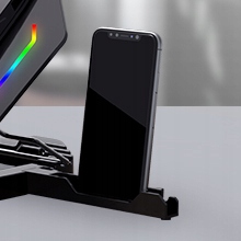 Підставка для ноутбука насамперед характеризується сучасним виглядом, стабільною конструкцією та ефективною системою вентиляторів. Розташування вентиляторів забезпечує ідеальне та ефективне охолодження ноутбука незалежно від розташування нагрівальних компонентів (процесор, відеокарта, системи живлення, жорсткі диски).
