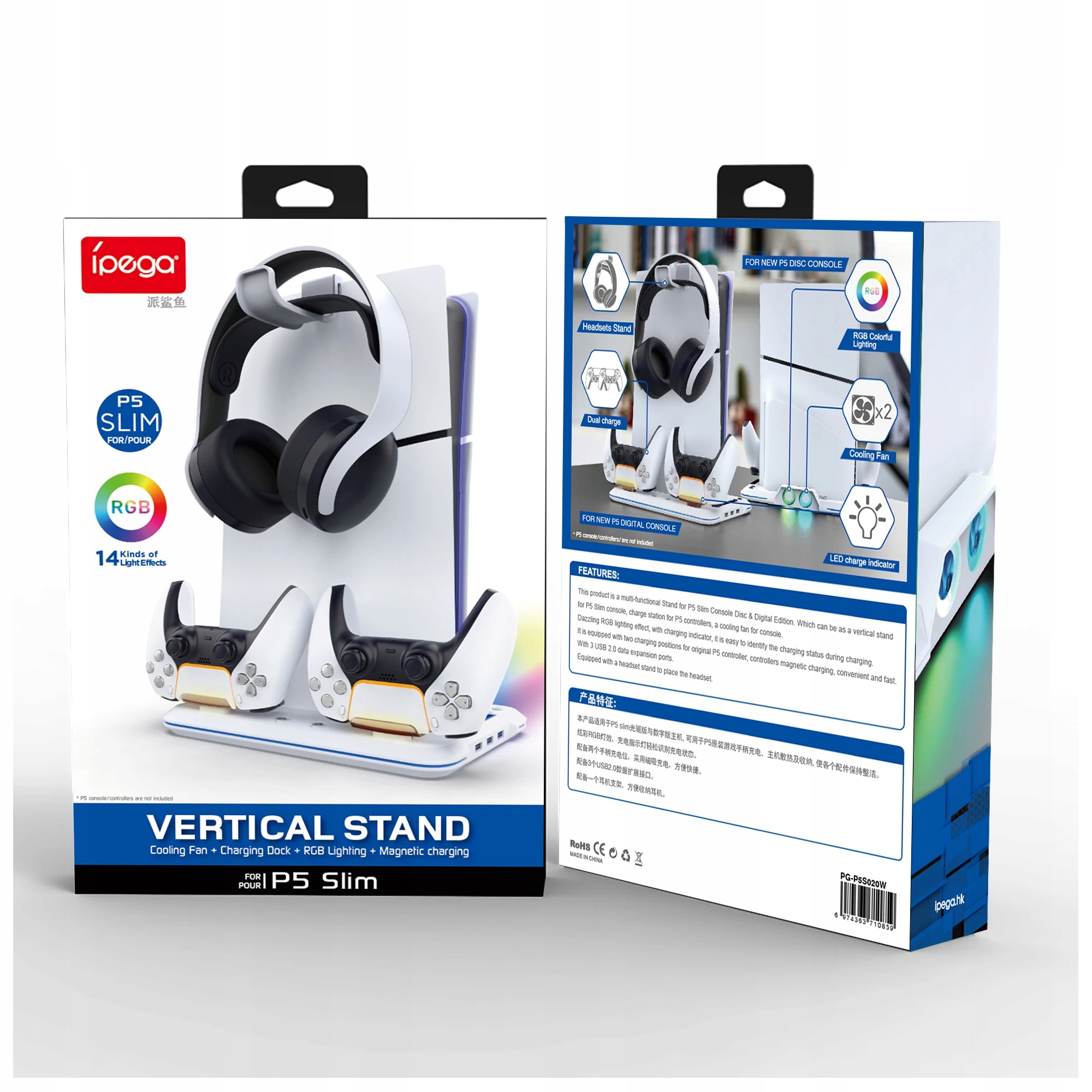 IPEGA PG -P5S020W - Станція з охолодженням RGB до Sony PS5 Slim із зарядкою PAD та вішалкою для навушників