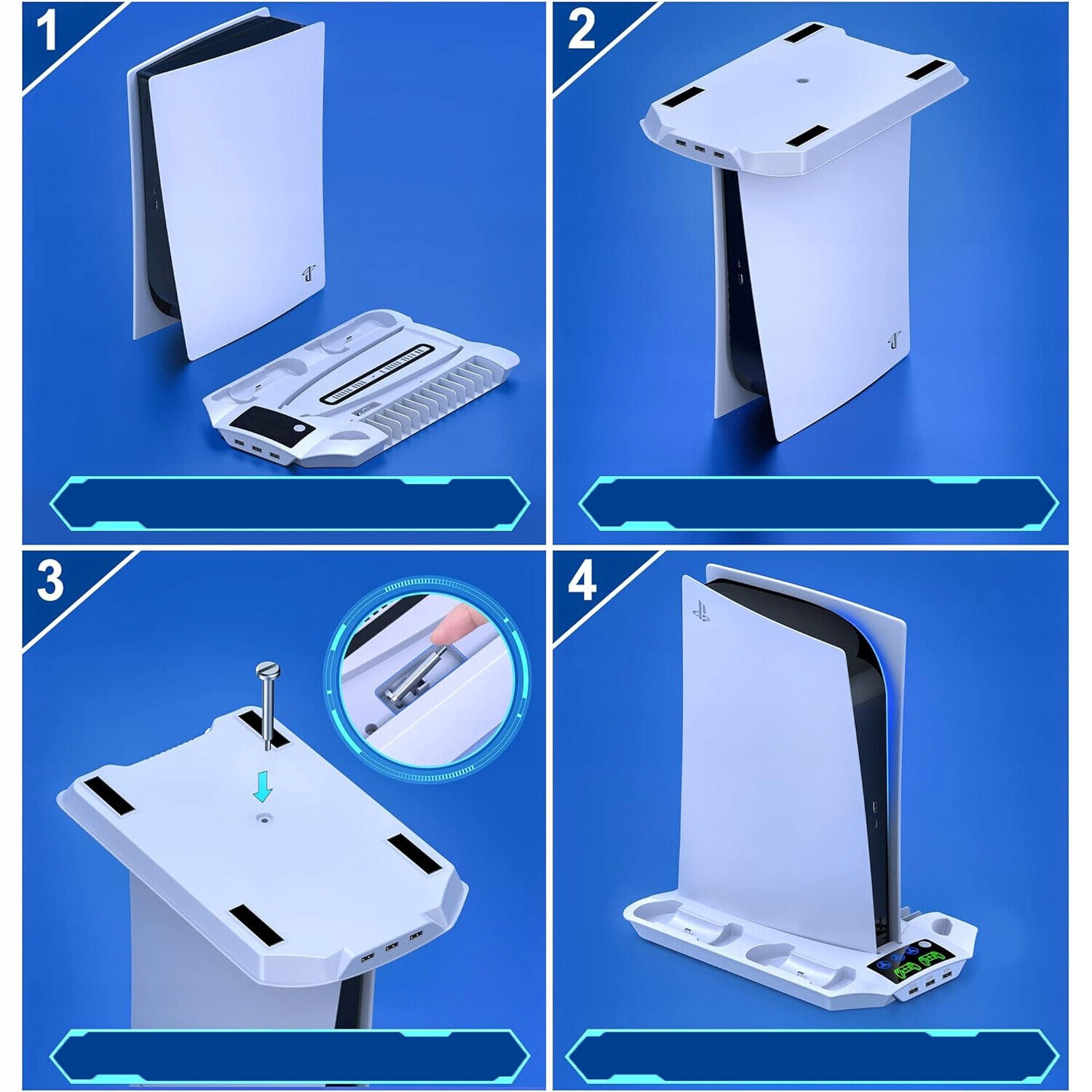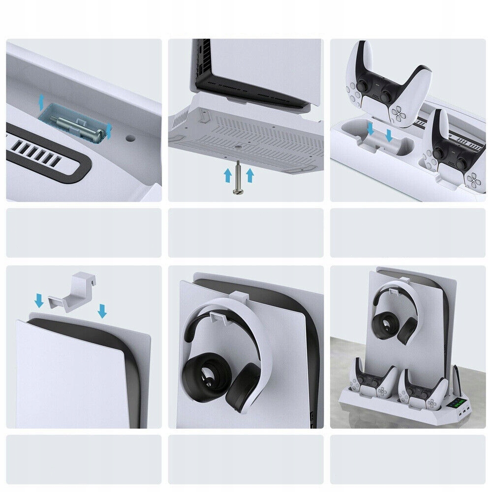 ✔ ✔ Остання станція охолодження для PS5 Консоль】 Високошвидкісний вентилятор PS5 має 3 регульовані передачі: міцні/середні/нормальні. Аксесуари PlayStation 5 PS5 вентилятор витягує гаряче повітря з нижньої консолі і ефективно відволікає тепло праворуч, завдяки якому вентилятор PS5 охолоджує консоль PS5 та покращує досвід гри. Вам більше не потрібно турбуватися про перегрівання консолі, коли ви граєте цілий день і ніч! Станція охолодження PS5 максимізує життя ігрової консолі. Набір навушників тощо для зарядки. Завдяки тонкому та впорядкованому дизайну, зарядна станція PS5 економить багато місця для організації всіх аксесуарів PS5, таких як консоль, 2 контролери DualSense, набір навушників та PlayStation Media Remote. Необхідний організатор PS5! Світлодіодні індикатори чітко показують зарядку. Червоний: зарядка; Зелений: Повний заряд. Підставка для контролера PS5 може працювати на консолі PS5 або швидкого джерела живлення 5В/2А, пропонуючи більший вибір методів зарядки! Поради: Підставка для охолодження PS5 автоматично відрізає живлення після повного заряду для захисту пристроїв. Тип клавіш типу C Тип C Для ефективного запобігання втрат, все, що вам потрібно зробити, - це вставити порт зарядки зарядки, а контролер легко відпочиває на зарядній станції контролера PlayStation 5 і негайно почне заряджати зарядку. Консоль PS5 можна легко підключити до док -станції PS5. Просто поверніть консоль PS5 догори ногами, щоб заблокувати гвинт у консолі PS5, збільшуючи стабільність та захищаючи його від аварії чи пошкодження.