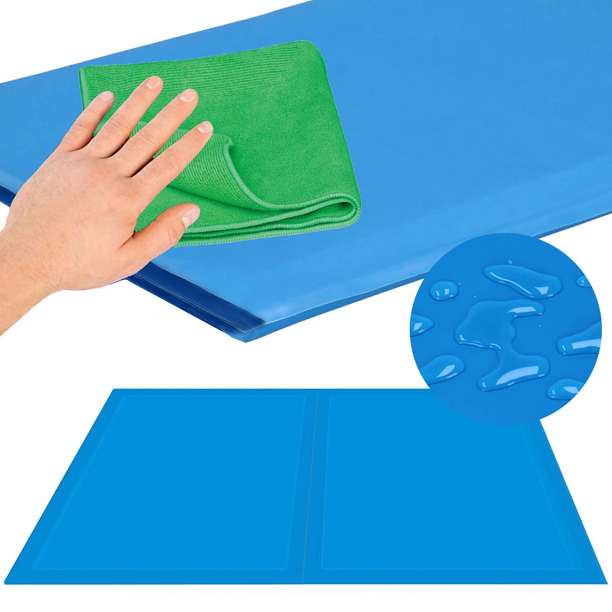 Інноваційний килимок для охолодження не потребує підключення до електрики, акумуляторів або використання води чи спеціальних обробок . Постійний ефект охолодження обумовлений реакцією гелю на контакт з тілом. Діє до кількох годин і може використовуватися знову після короткої перерви.