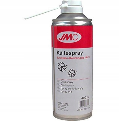 JMC локальний охолоджувач. Дуже корисний продукт, який в основному використовується для охолодження металевих елементів, наприклад, підшипників, втулок, ланок ланцюга або інших елементів з щільною посадкою перед їх установкою в мотоцикл. Ємність: аерозоль 400 мл. Країна походження: Німеччина.