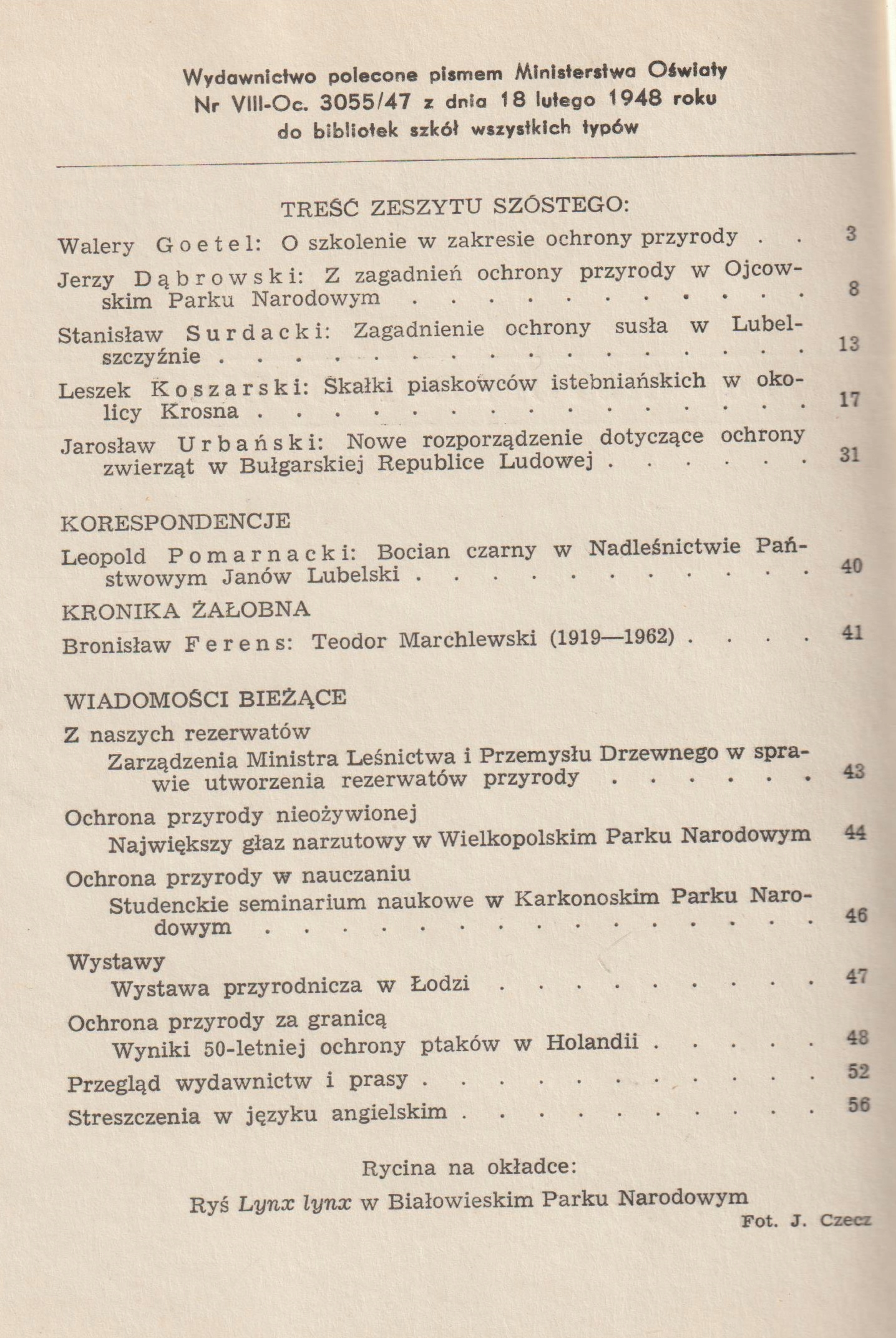 ОХОРОНІМО ПРИРОДУ 1-6/1962