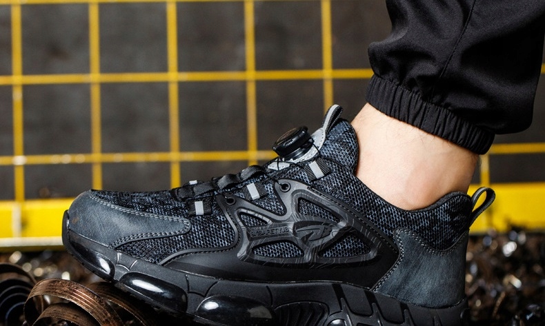 【Дихаюча сітка】 Дихаюча сітчаста тканина нашого стійкого до ударів і проколів робочого взуття, ch【Шнурки на ґудзиках】 Завдяки інноваційним шнурівкам на ґудзиках нашим стійким до ударів і проколів робочим взуттям можна легко керувати однією рукою. Натяг можна швидко відрегулювати всього за 3 секунди, завдяки чому турботи про ослаблені шнурки залишаться в минулому. Ці шнурки дають можливість індивідуально підібрати, не турбуючись про традиційне зав’язування чи розв’язування. Особливості【Шнурки на ґудзиках】 Завдяки інноваційним шнурівкам на ґудзиках нашим стійким до ударів і проколів робочим взуттям можна легко керувати однією рукою. Натяг можна швидко відрегулювати всього за 3 секунди, завдяки чому турботи про ослаблені шнурки залишаться в минулому. Ці шнурки дозволяють регулювати їх індивідуально, не турбуючись про традиційне зав’язування чи розв’язування – вони легкі та міцні. Внутрішня вологопоглинаюча сітчаста підкладка забезпечує оптимальну циркуляцію повітря та повітропроникність, ефективно усуває запах ніг і зменшує потовиділення, що робить її ідеальним компаньйоном у теплому робочому середовищі