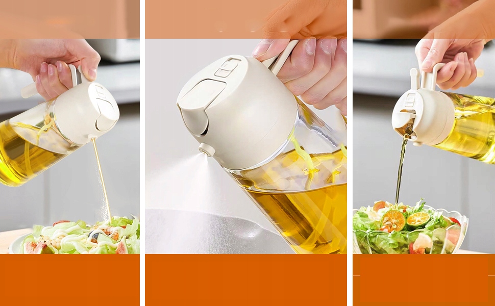⭐Двофункціональний дизайн і багатофункціональність: пляшка з розпилювачем олії забезпечує зручність як розпилення, так і наливання олії, підходить для широкого діапазону процесів приготування їжі, таких як заправка салатів, смаження сковорода, випічка, гриль, запікання.