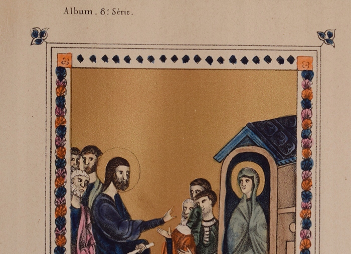 Прекрасна літографія із зображенням сцен із Біблії відповідно до середньовічних мініатюр «Les Arts au Moyen Age» («Мистецтво Середньовіччя») . h2>Літографія розписана вручну.