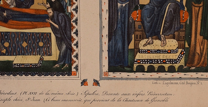 Прекрасна літографія із зображенням сцен із Біблії відповідно до середньовічних мініатюр «Les Arts au Moyen Age» («Мистецтво Середньовіччя») . h2>Літографія розписана вручну.