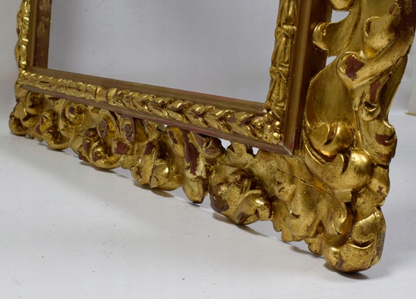 Стара декоративна, ажурна, різьблена дерев'яна рама у флорентійському стилі. Рама в оригінальному стані та частково вкрита шлагметаллом. Візуальний стан рами дуже хороший, це видно на фотографіях нижче.
