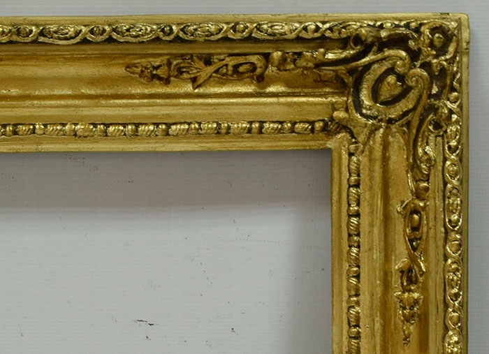 старий, багатий, дерев’яний кадр з прекрасними декоративними куларами. Рама покрита пластівцями молота.