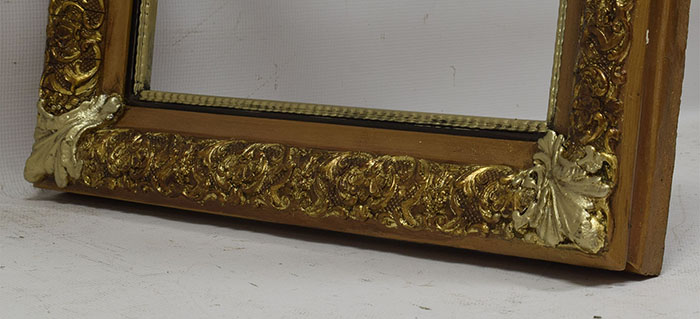 Стара декоративна рамка з декоративними кутами, вкрита шлагметальними лусками. У раму додано нові декори. Візуальний стан рами хороший, це видно на фотографіях нижче.
