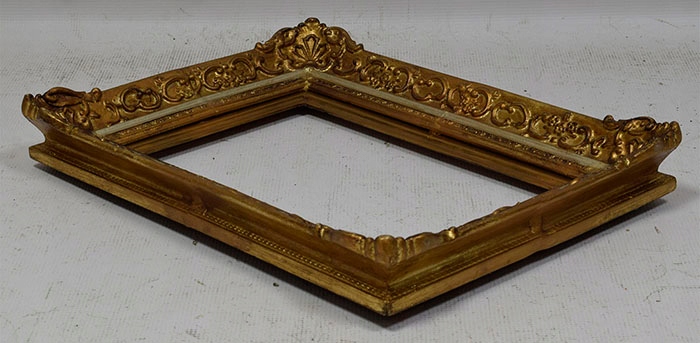 Стара декоративна дерев’яна рама з декоративними кутами, вкрита шматками шлагметалу.