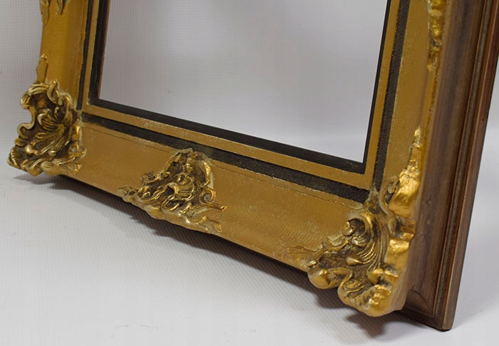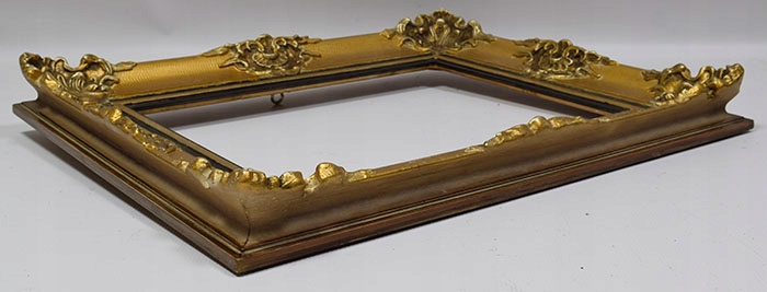 Стара декоративна дерев'яна рама в оригінальному стані та частково пофарбована. Рамка з декоративними куточками. Візуальний стан рами хороший, це видно на фотографіях нижче.