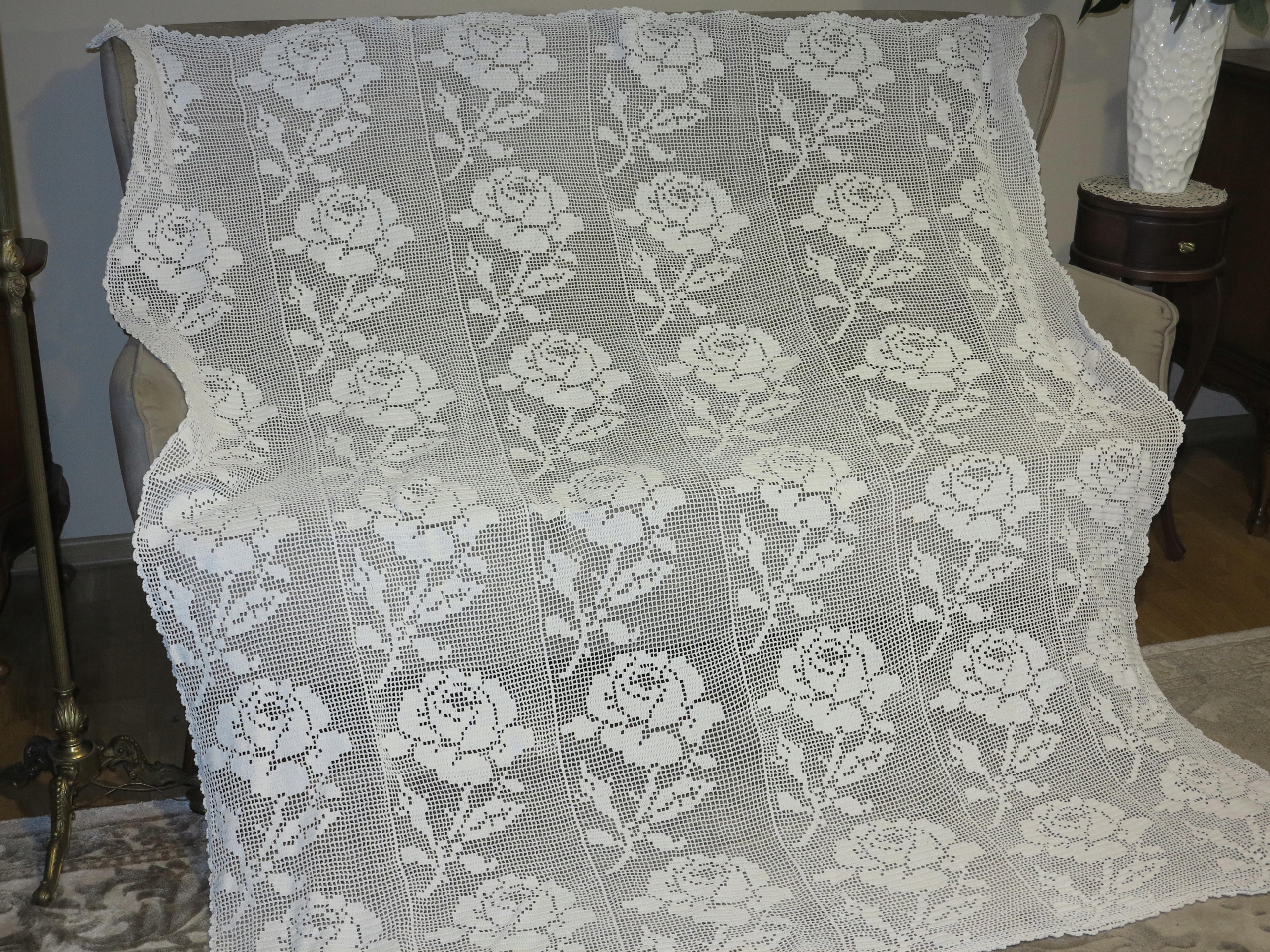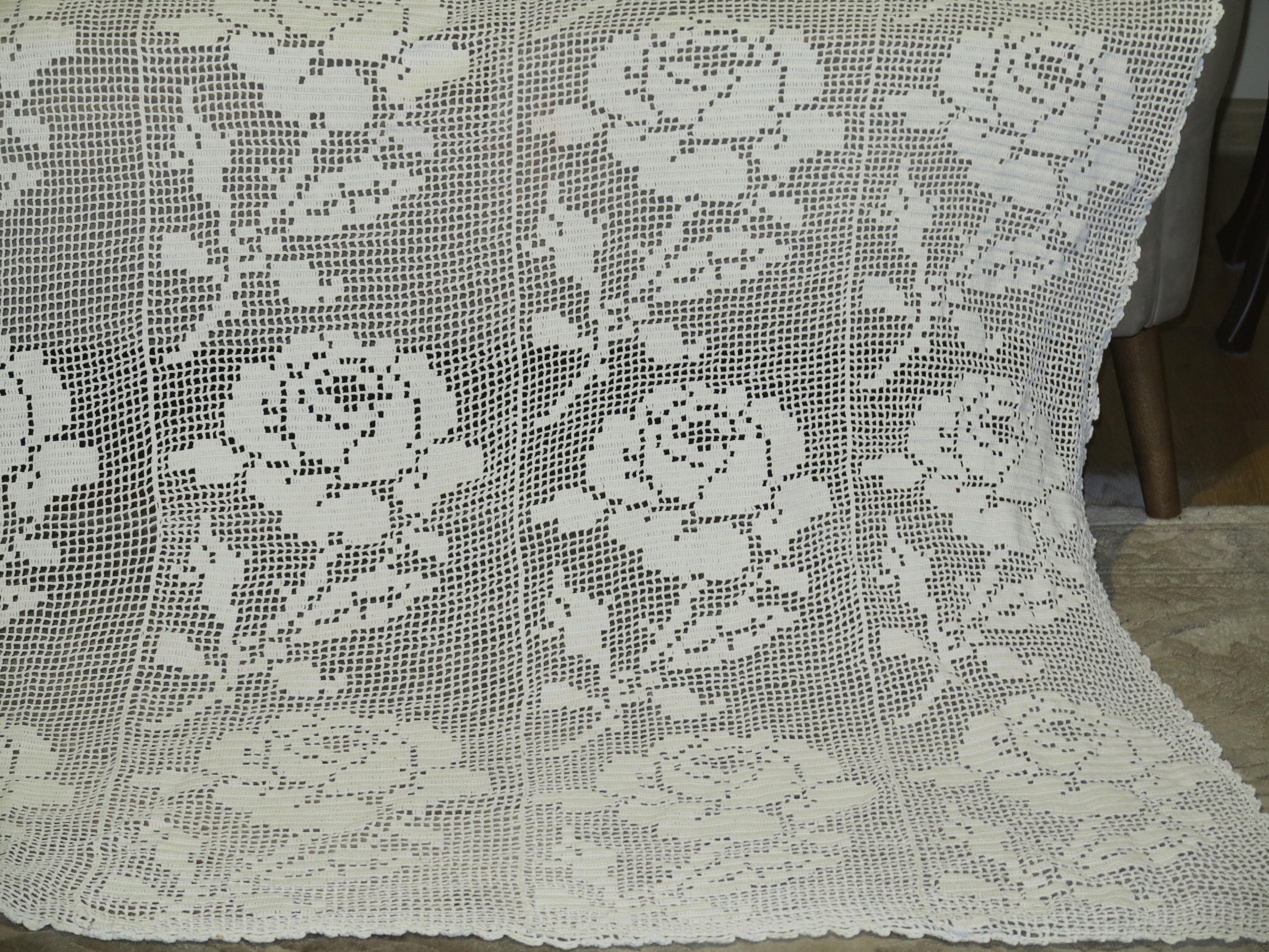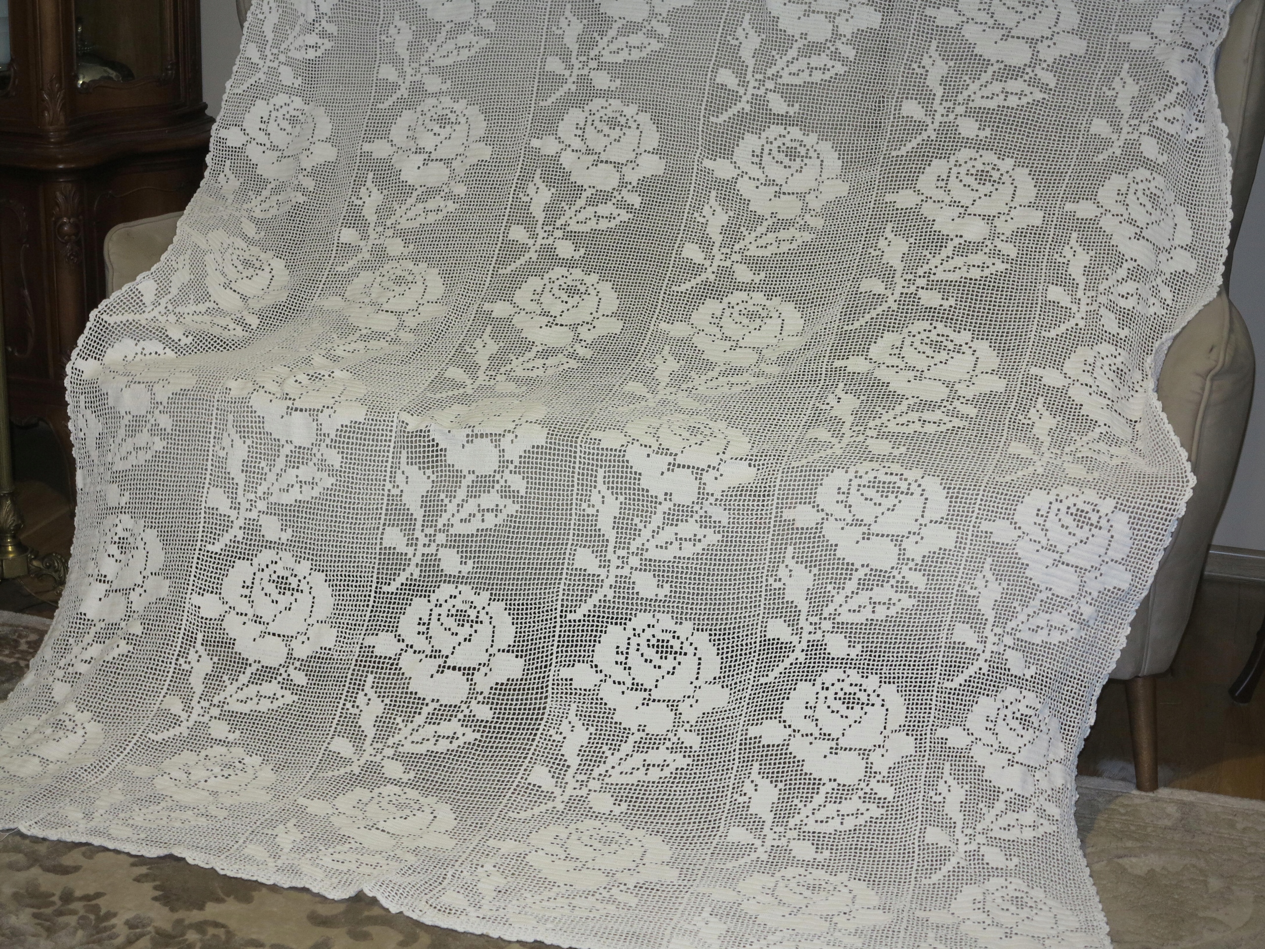 Предмет аукціону - красива в'язана бавовняна скатертина або покривало повністю ручної роботи. Це дуже акуратна річ, товста і міцна. Його розміри: 203/170 см. Скатертина б/в, в дуже хорошому стані та якості. Рекомендую, ідеальна прикраса для стильного інтер'єру.